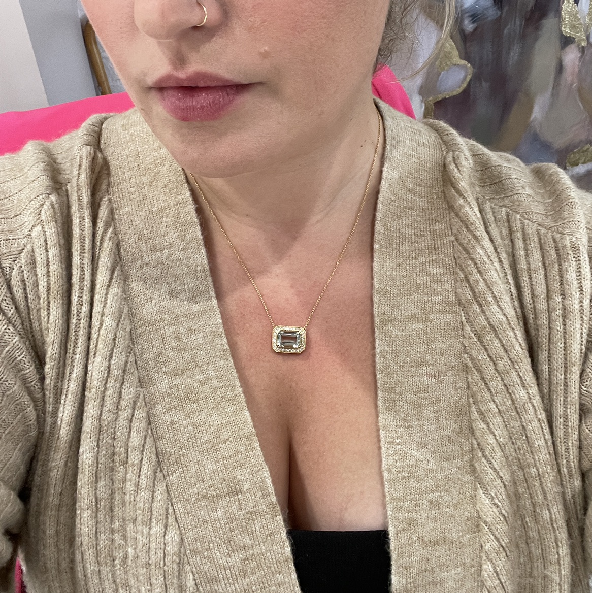 18KY GOLD EMERALD CUT PRASEOLITE BEZEL SET WITH DIAMOND HALO