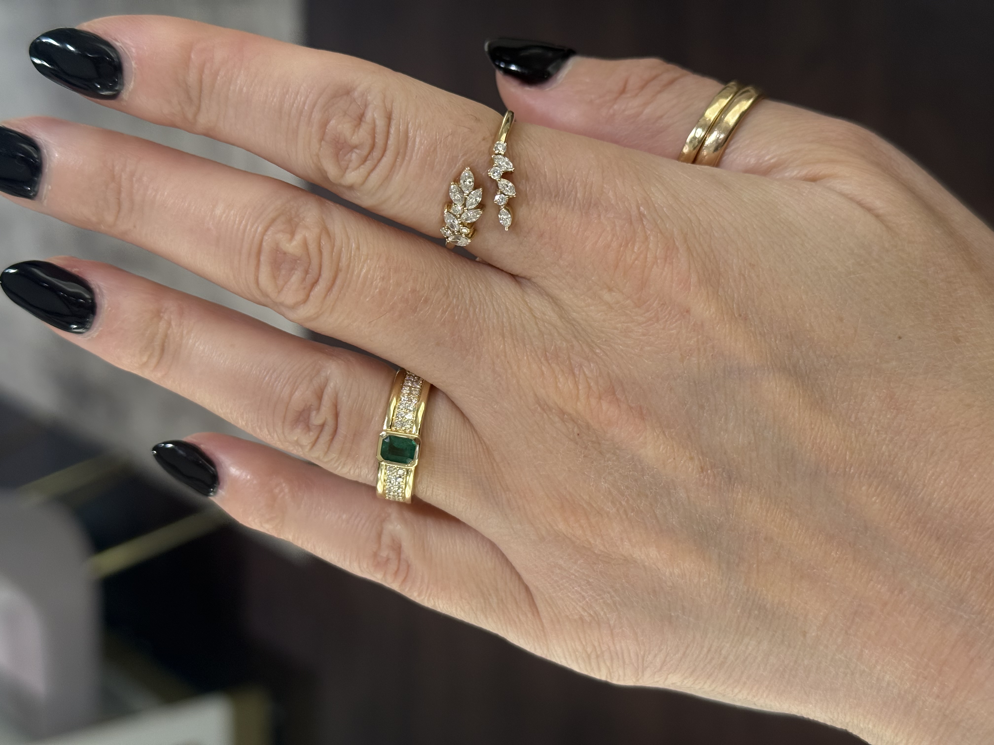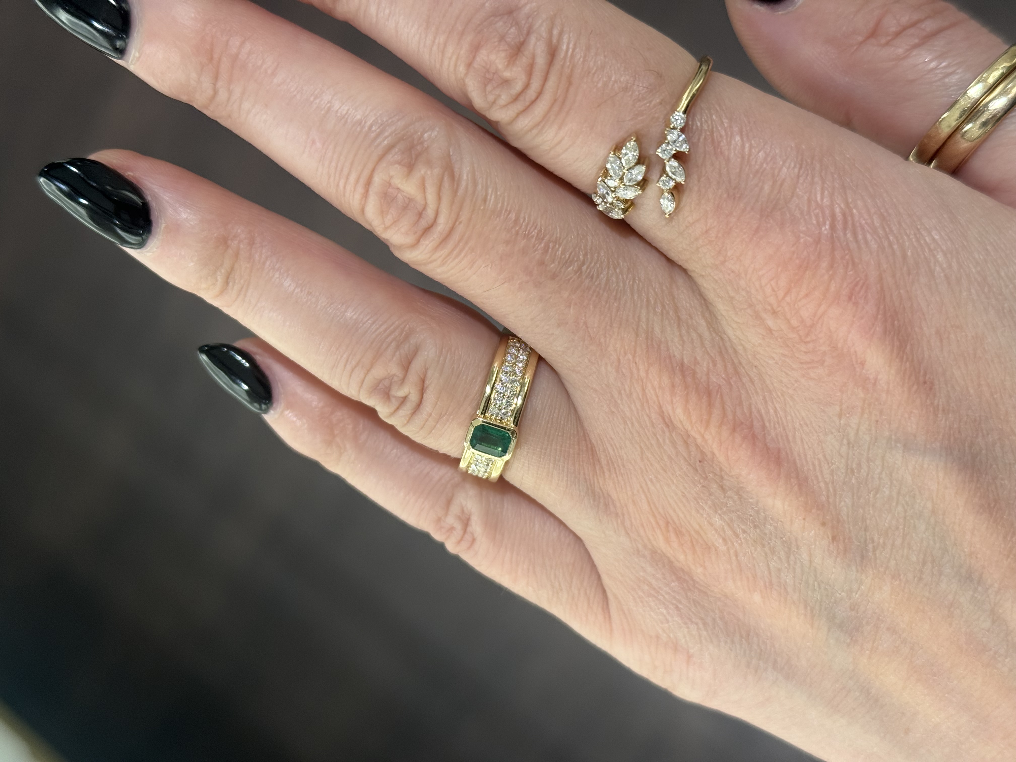 14KY GOLD BEZEL-SET EMERALD & DOUBLE-ROW PAVE DIAMOND BAND