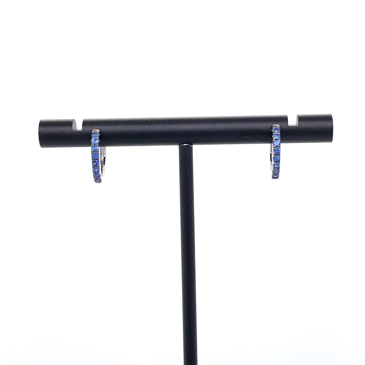 14KW GOLD 13MM SINGLE-ROW SAPPHIRE HUGGIE HOOP EARRINGS