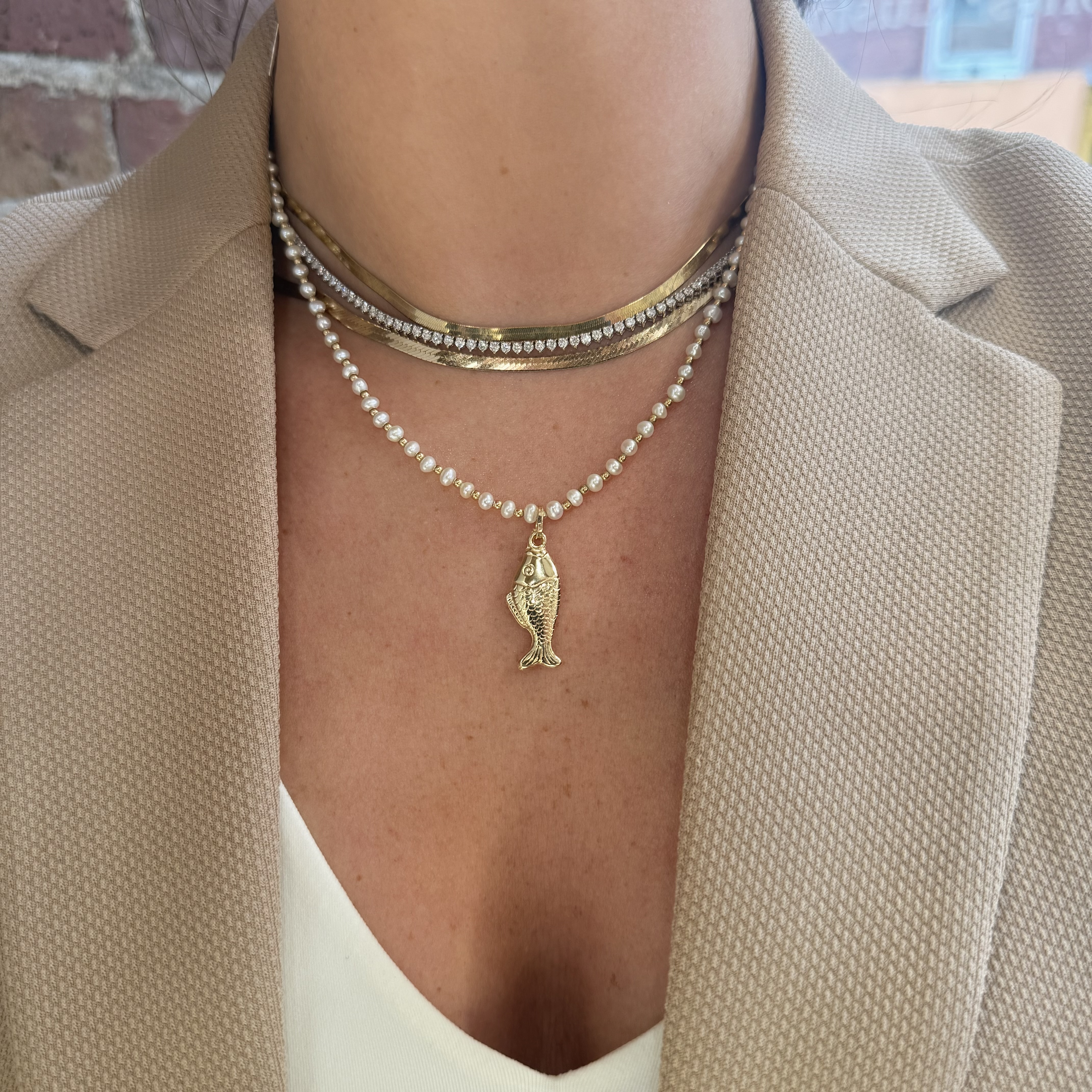 *chain sold separately. shown on 16" gold chain and Pearl and Gold Bead Necklace