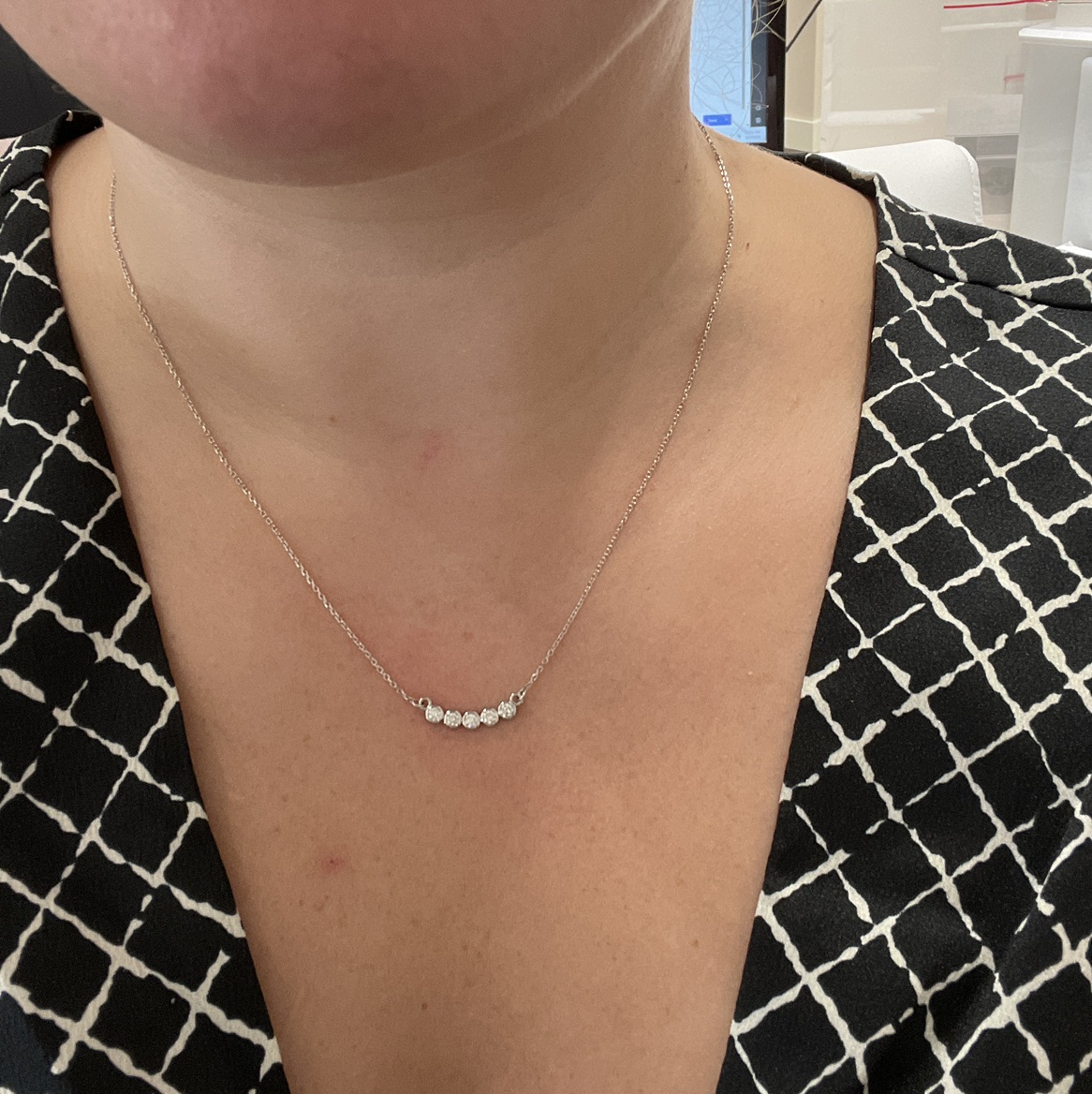 14kw bezel-set curved 1/3cttw diamond five stone station necklace on 16"-18" cable chain