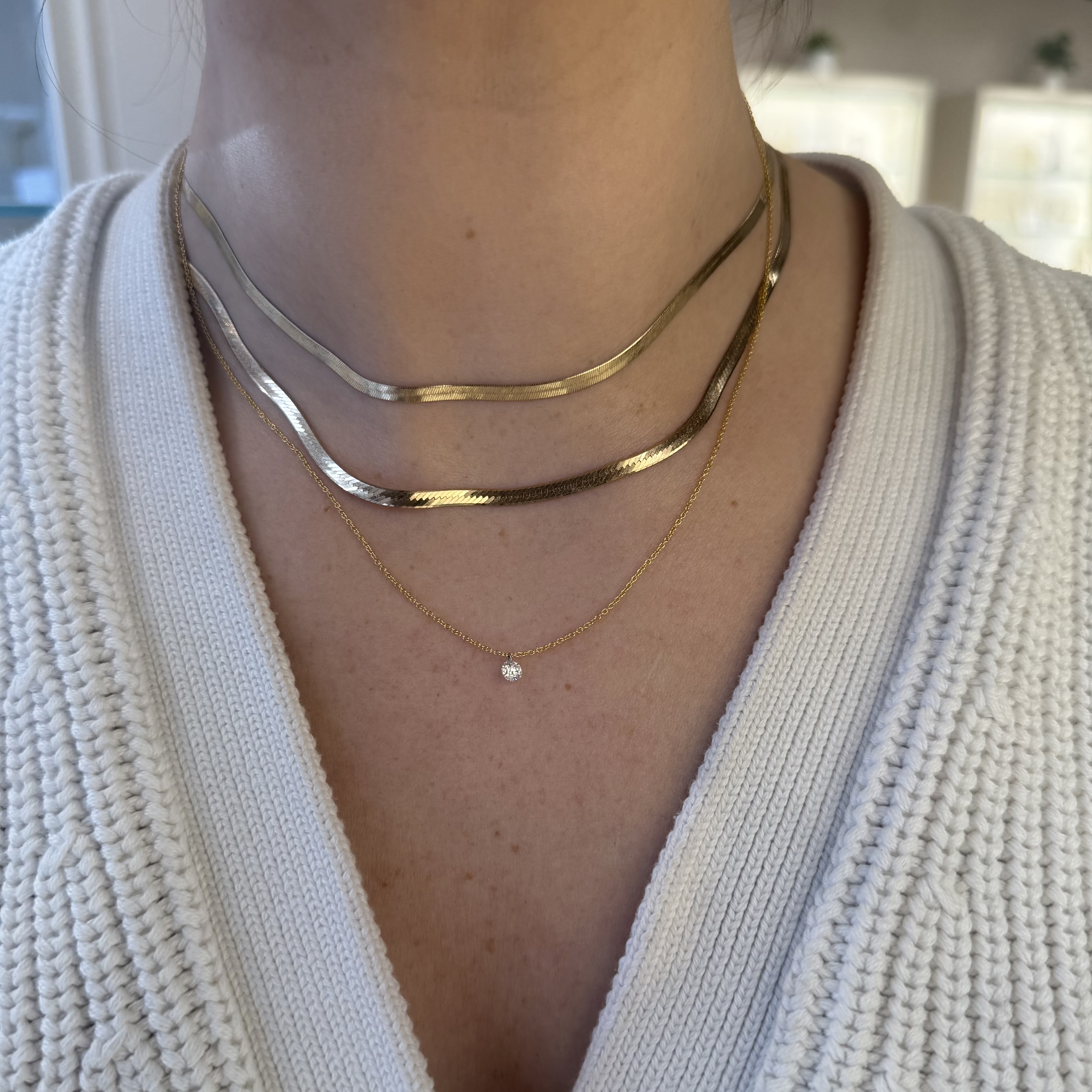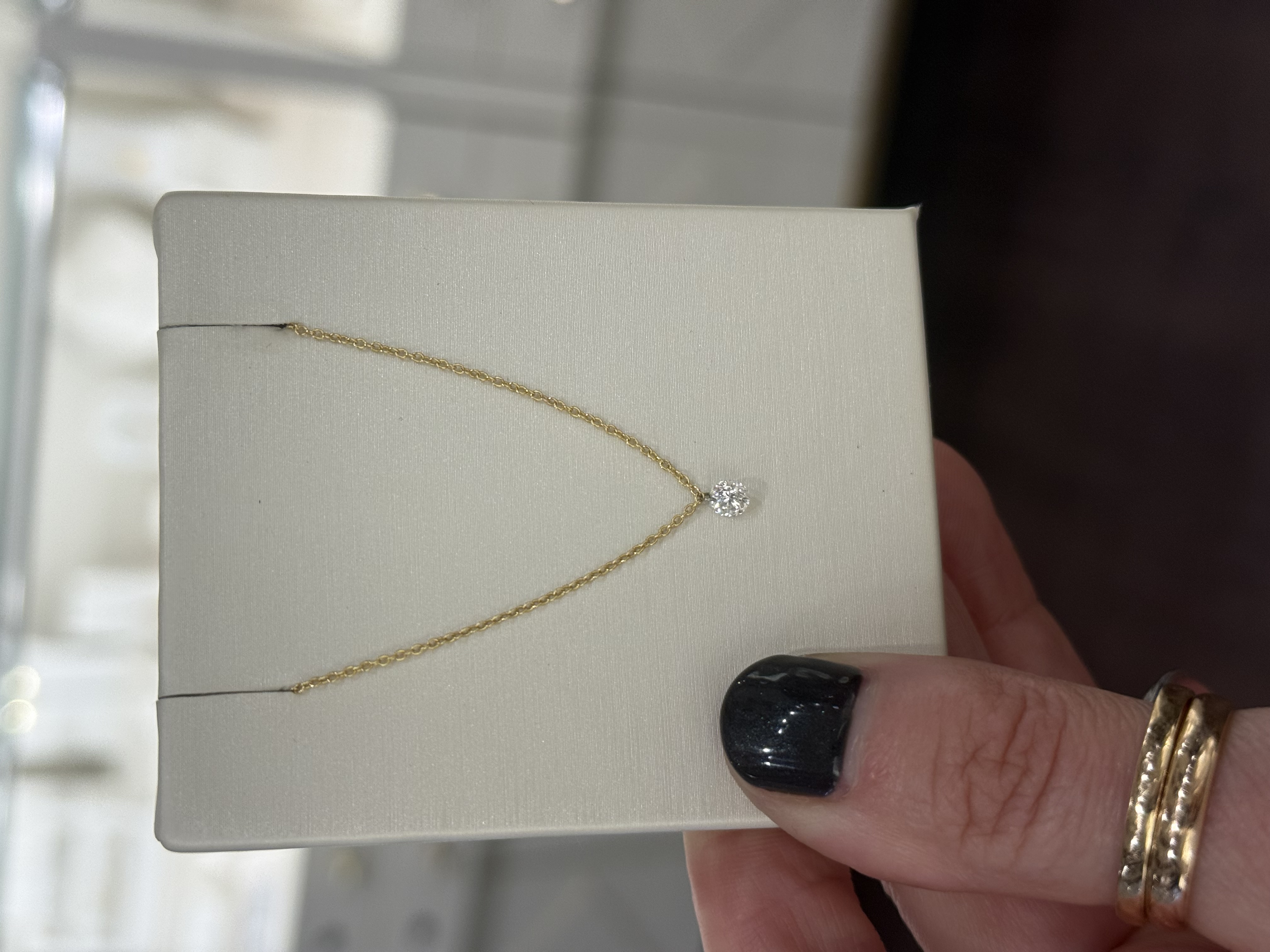 18KY GOLD FLOATING DIAMOND SOLITAIRE PENDANT ON 18" ADJUSTABLE BOLO CHAIN