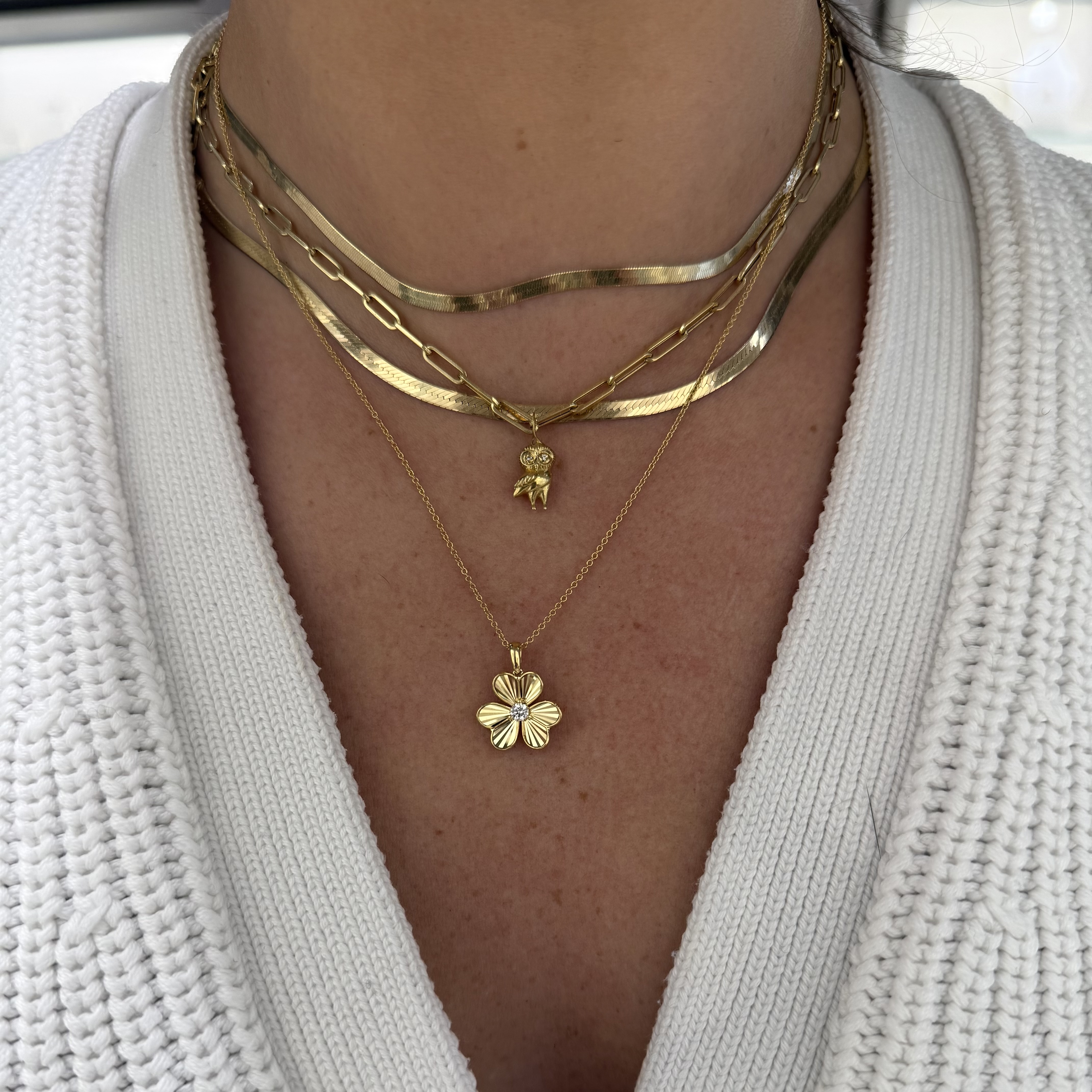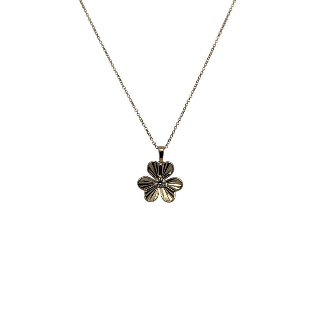 14KY GOLD FLUTED CLOVER PENDANT WITH DIAMOND CENTER AND TAPERED BAIL