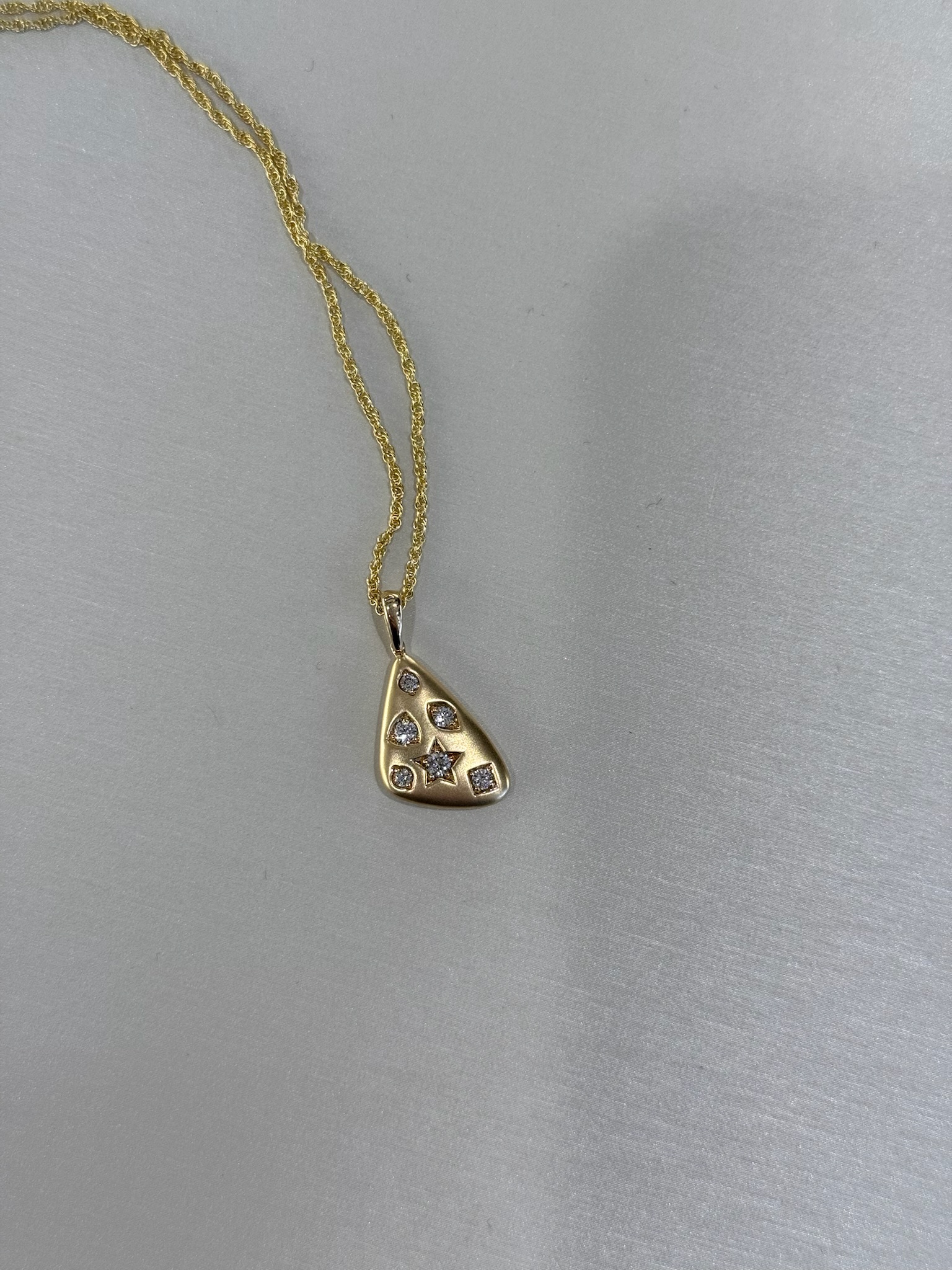 14KY GOLD FREE FORM PENDANT FEATURING FLUSH SET DIAMONDS