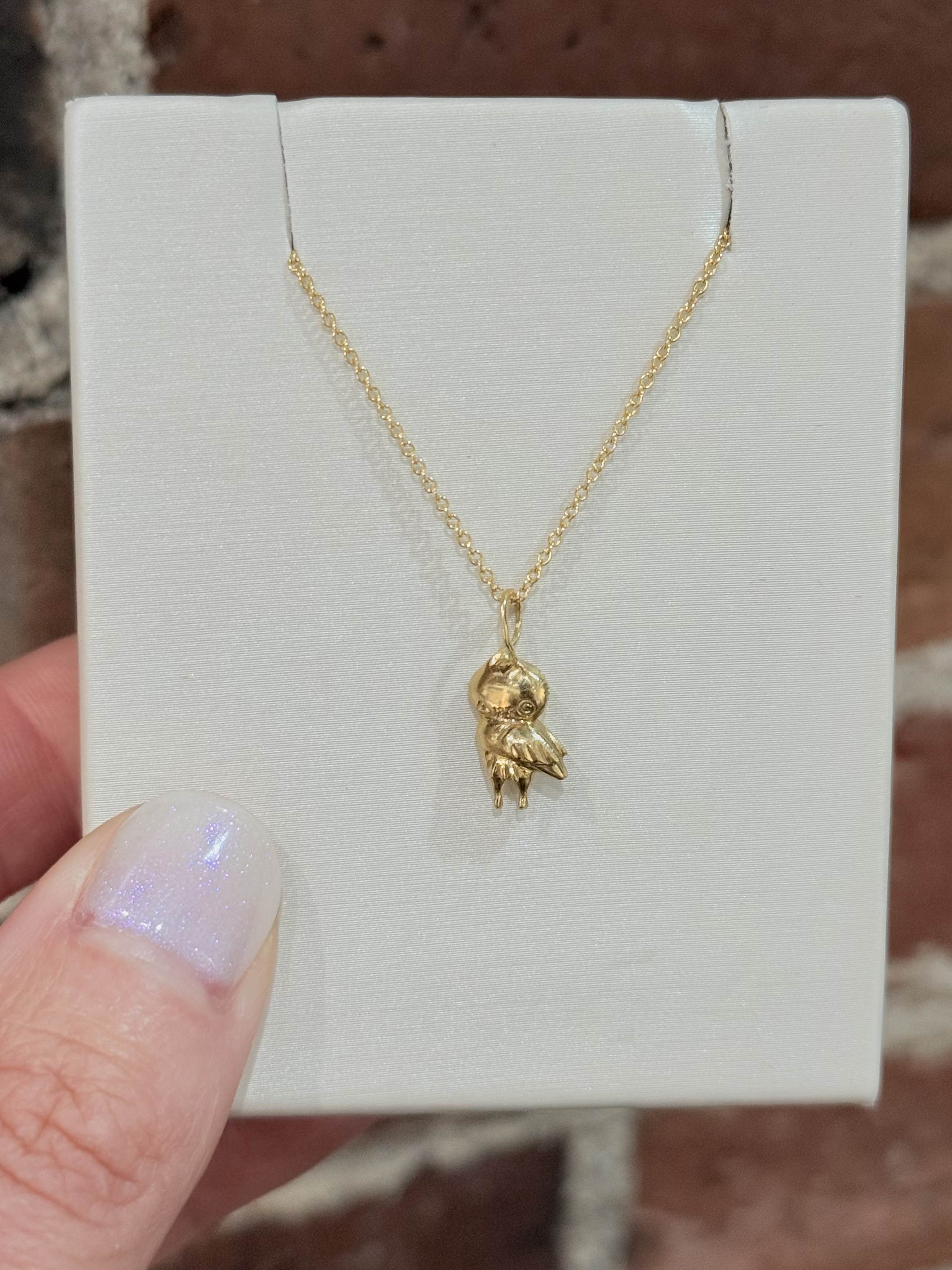 18KY GOLD OWL CHARM PENDANT WITH DIAMOND EYES