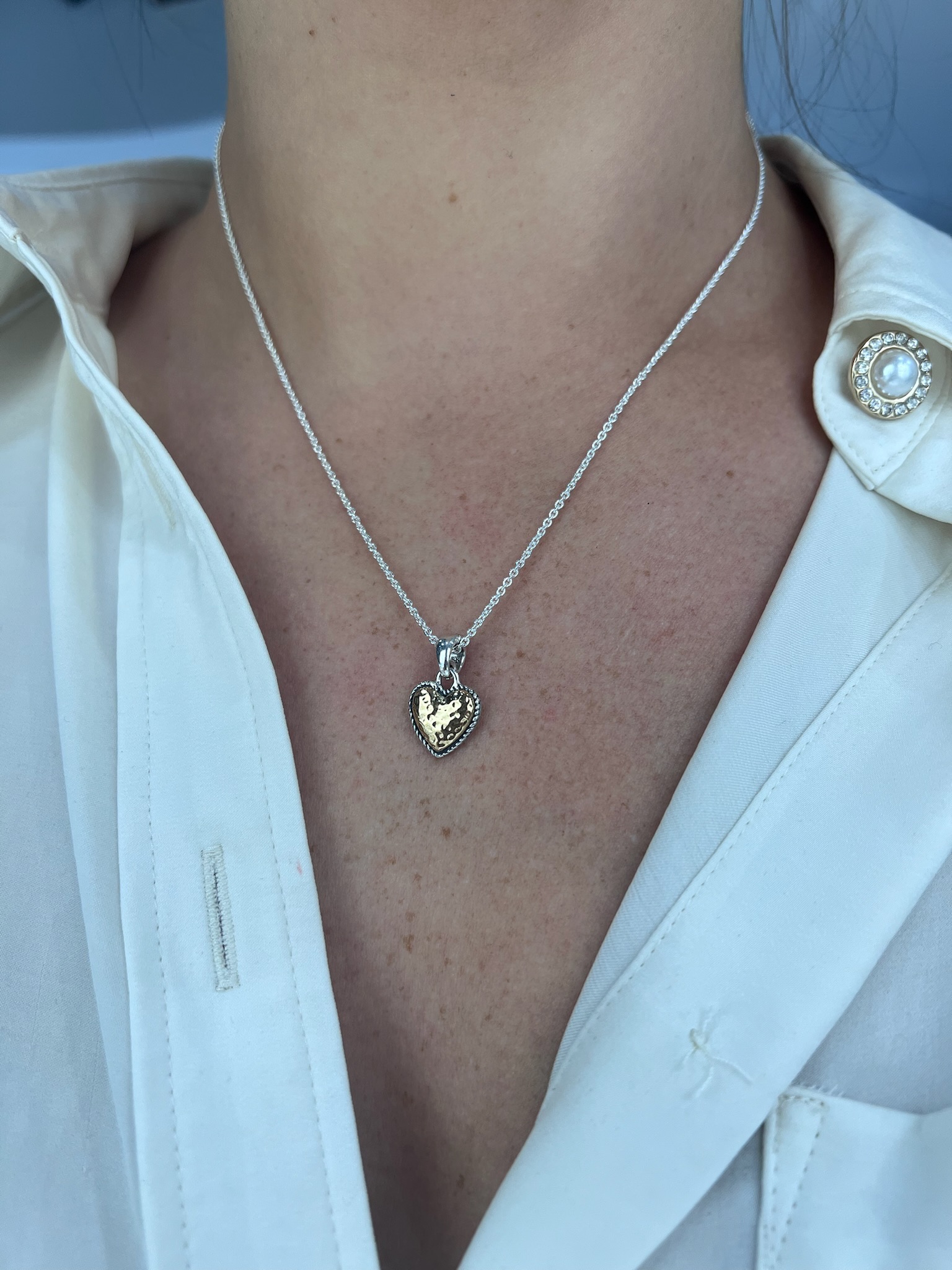 Description STERLING SILVER & 18KY GOLD HAMMERED HEART PENDANT SAMUEL B. COLLECTION | HANDCRAFTED IN BALISTERLING SILVER AND 18KT YELLOW GOLD- 925/750, HAMMERED FINISHHIGH POLISH BAIL 1 YEAR WARRANTY CARD INCLUDED