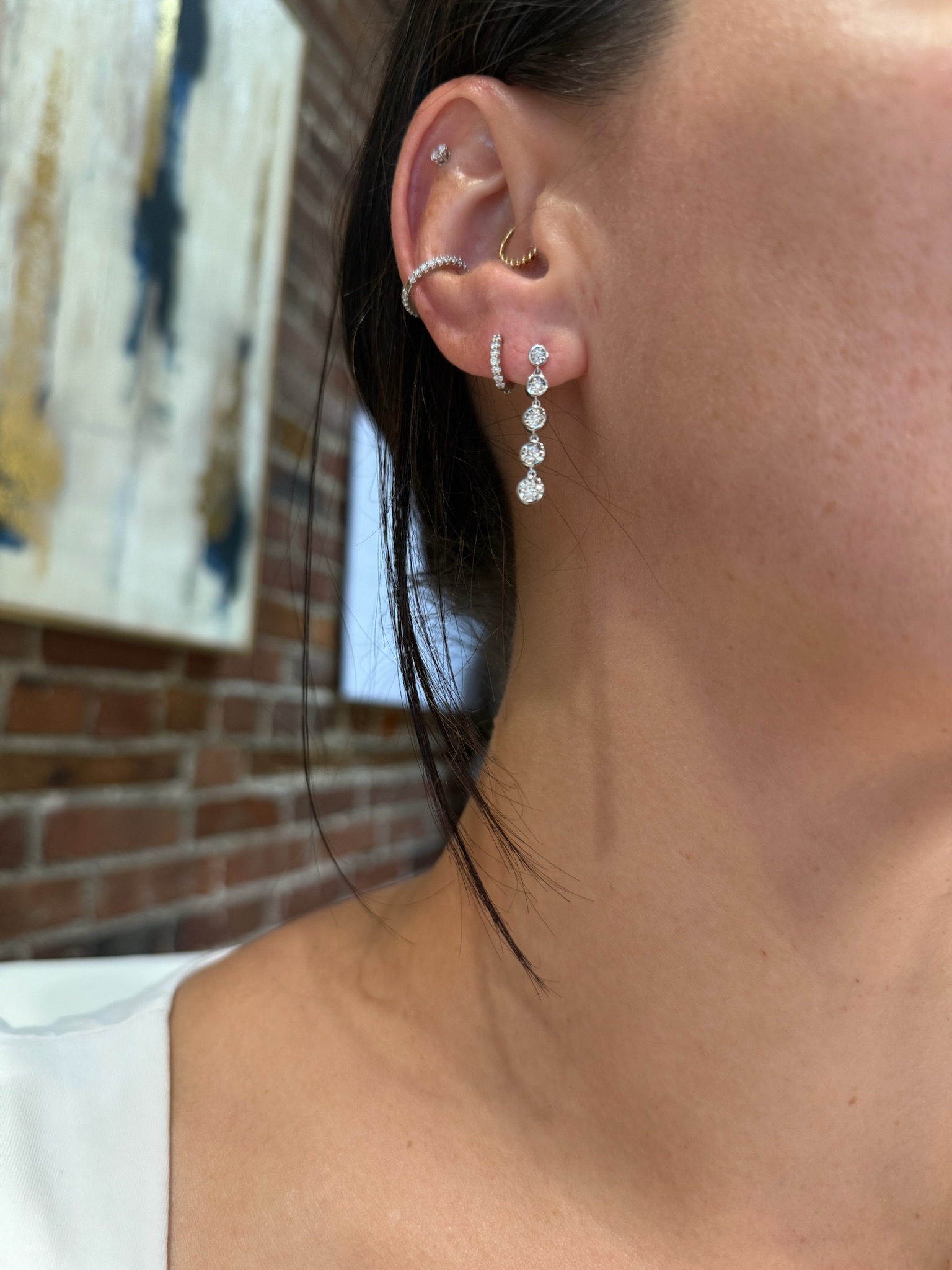 14KW GOLD GRADUATED ILLUSION BEZEL SET DIAMOND DANGLE EARRINGS