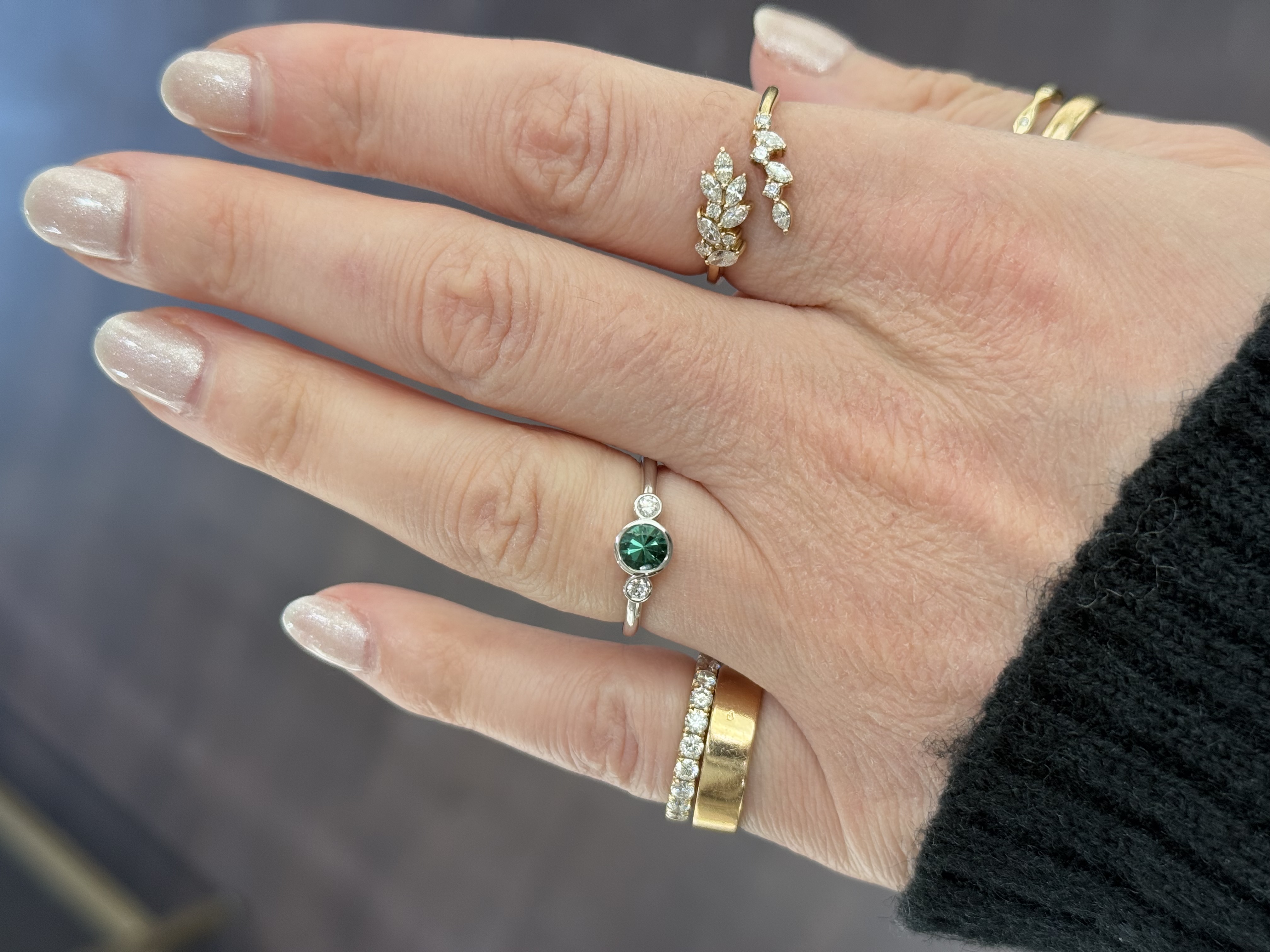 1= .47CT ROUND GREEN TOURMALINE, BEZEL SET