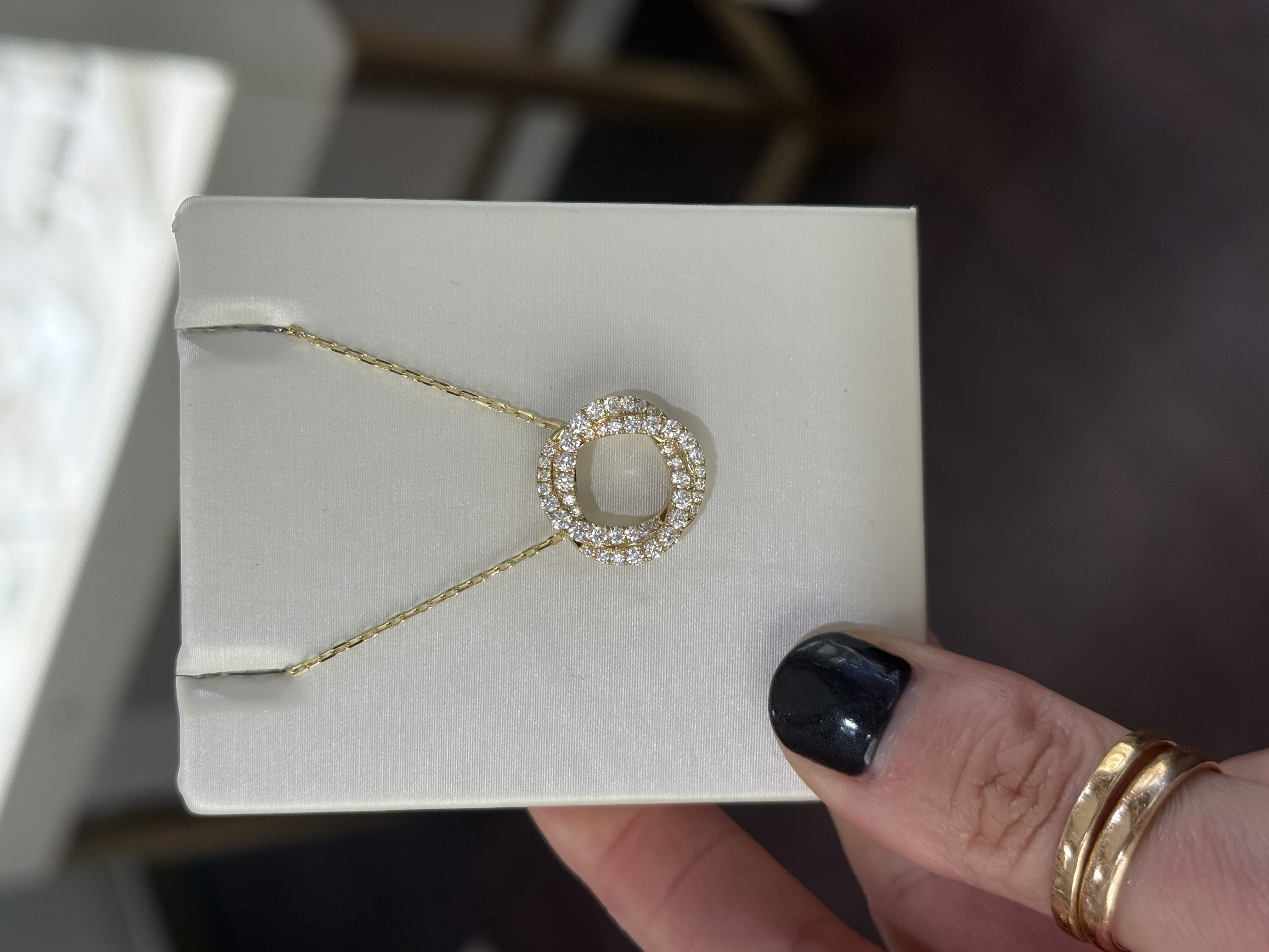 Description 14KY GOLD MEDIUM "HALO TWIST" DIAMOND SLIDE PENDANT 14KT YELLOW GOLD- 585, HIGH POLISH46=.78CTTW ROUND BRILLIANT CUT DIAMONDS G-H COLOR, VS2-SI1 CLARITY, PRONG SET18" 14KT YELLOW GOLD DIAMOND CUT CABLE CHAIN WITH LOBSTER CLASP
