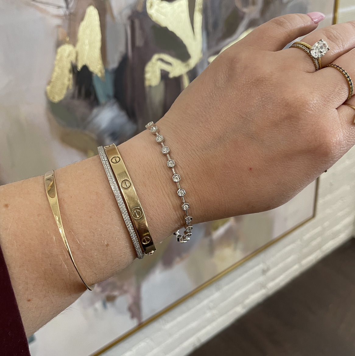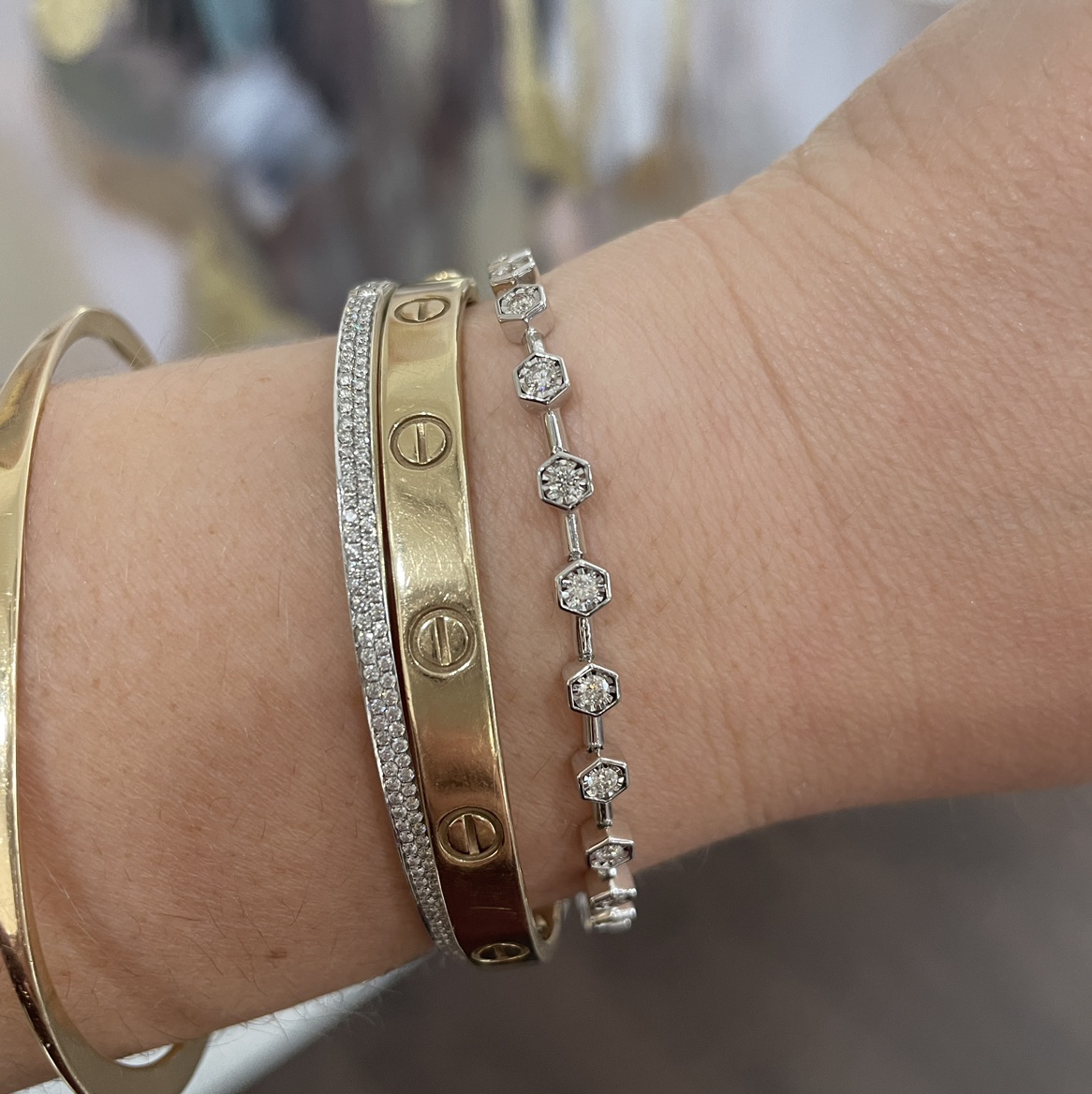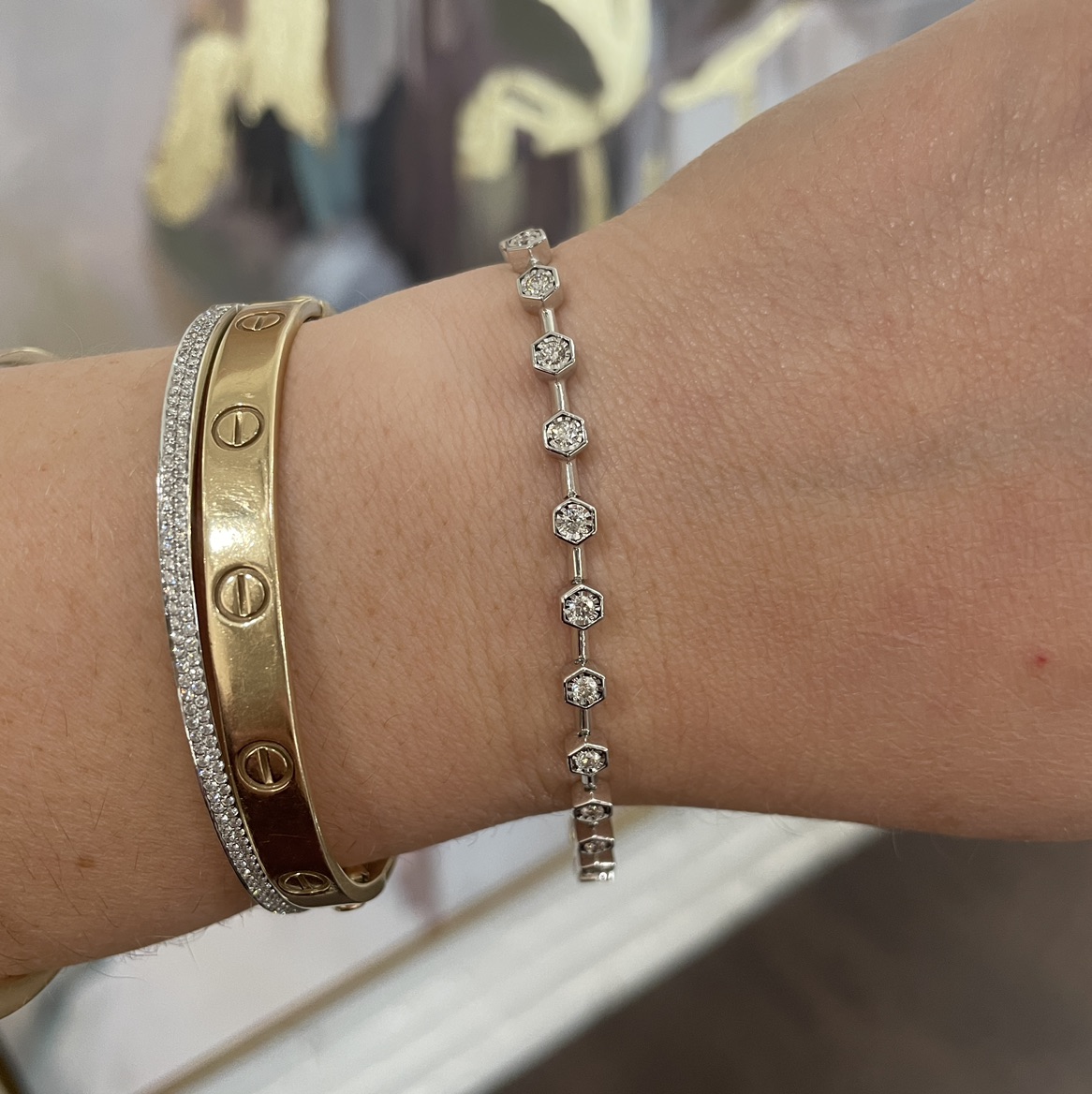 7" 14KW GOLD ALTERNATING ILLUSION BEZEL-SET DIAMOND AND LINK BRACELET