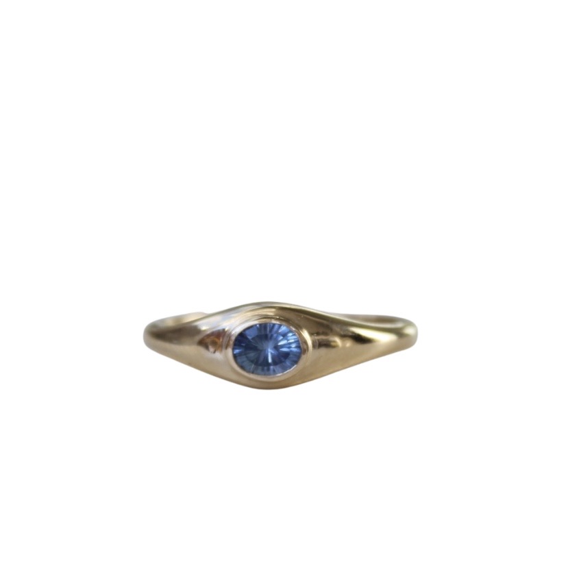 Description 14KY GOLD "SUMMERWIND COLLECTION: JUICY GEMS" BEZEL-SET OVAL CONCAVE SAPPHIRE RING 14KT YELLOW GOLD- 585, HIGH POLISH"SUMMERWIND COLLECTION: JUICY GEMS"1=.42CT OVAL CONCAVE CUT FANCY SAPPHIRE, 5X4MM, BEZEL SETFINGER SIZE 7
