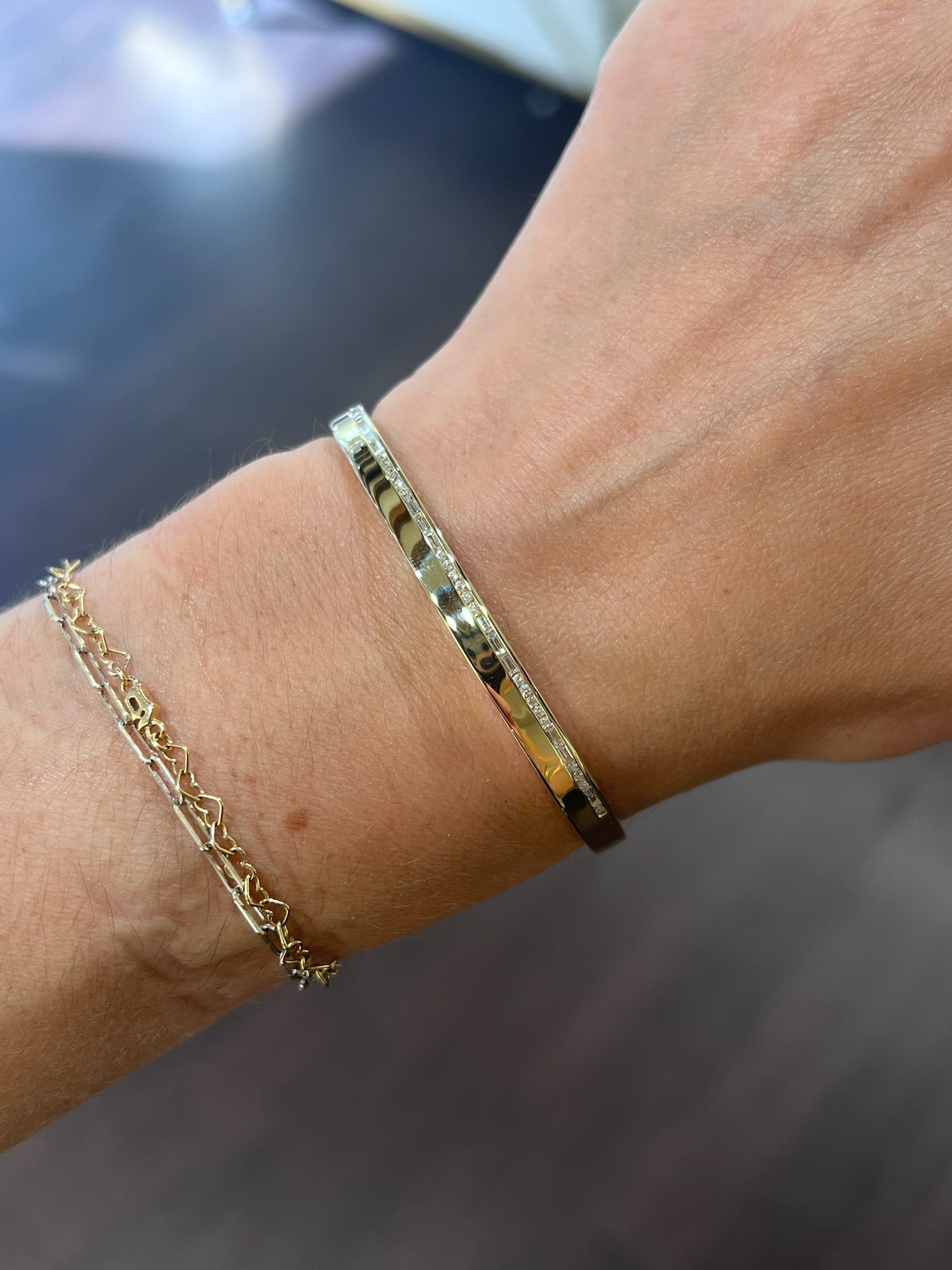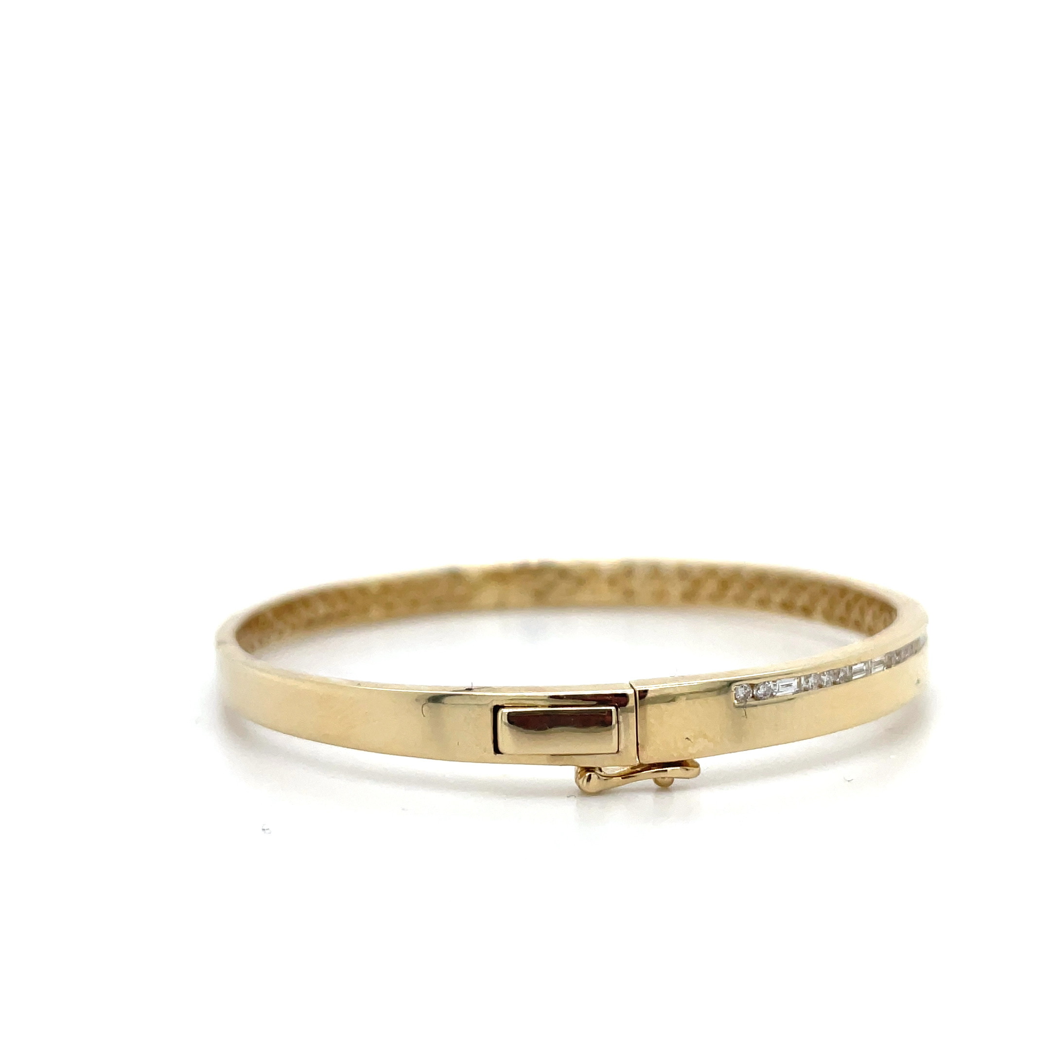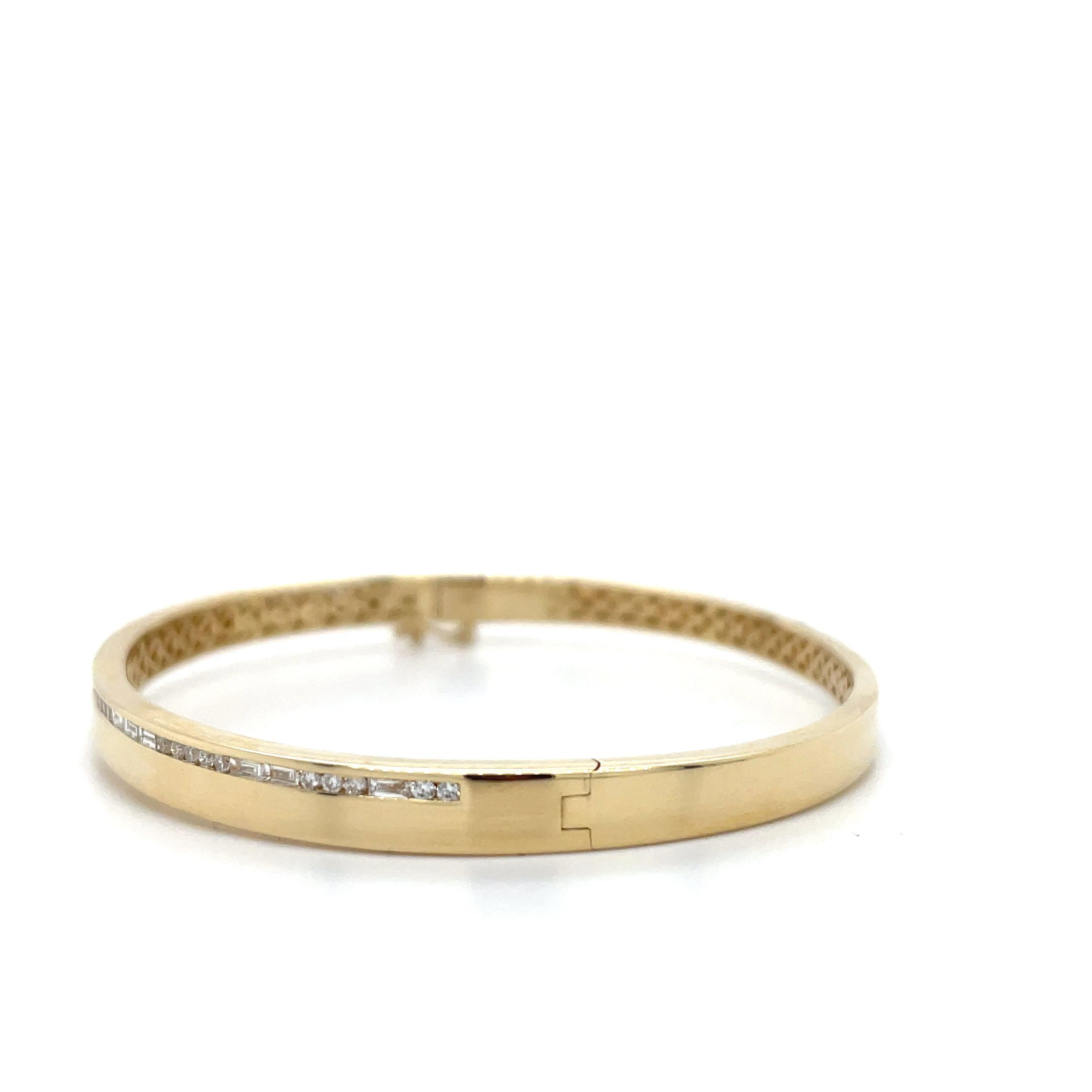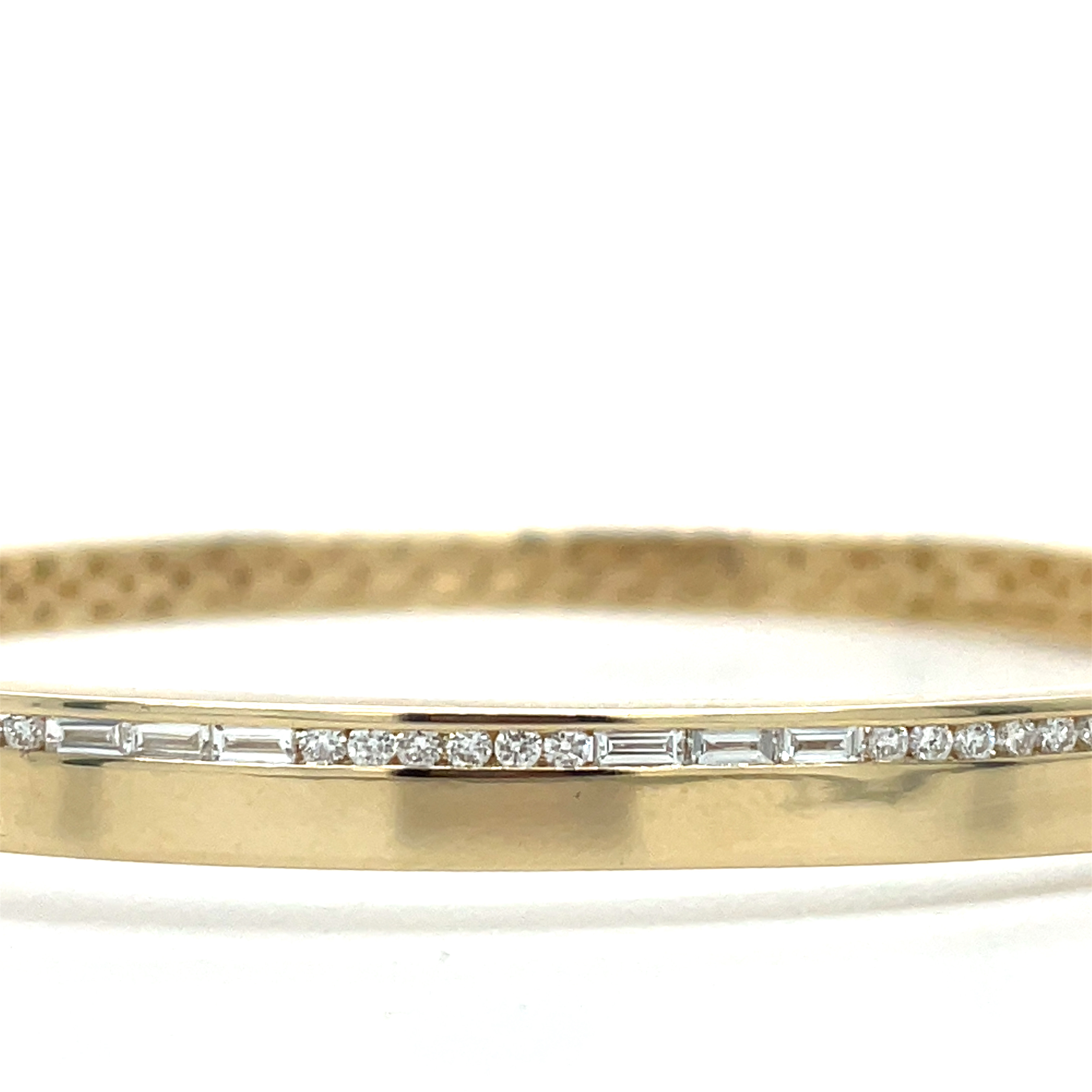 14KY GOLD CHANNEL SET 1-ROW BAGUETTE AND ROUND DIAMOND BANGLE BRACELET