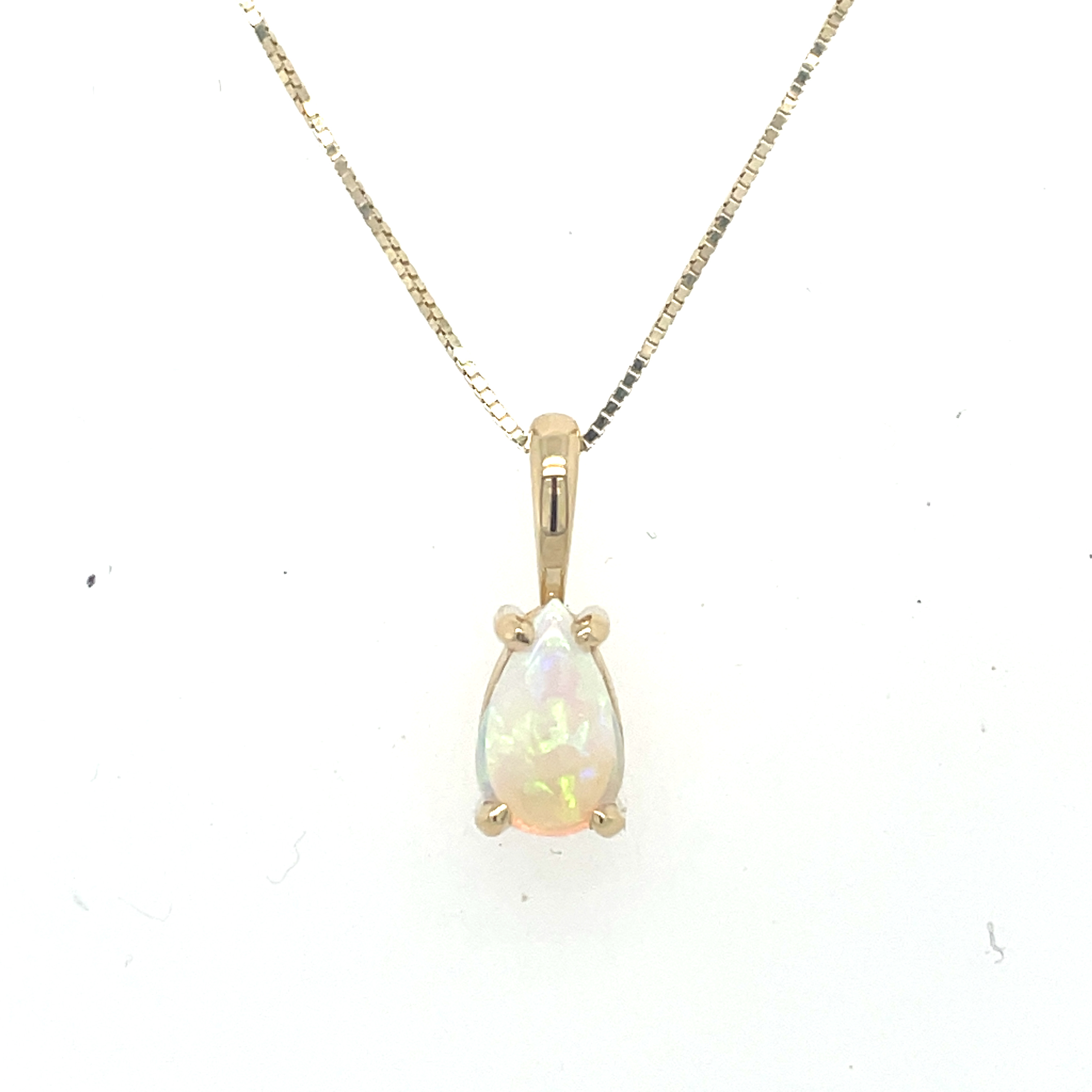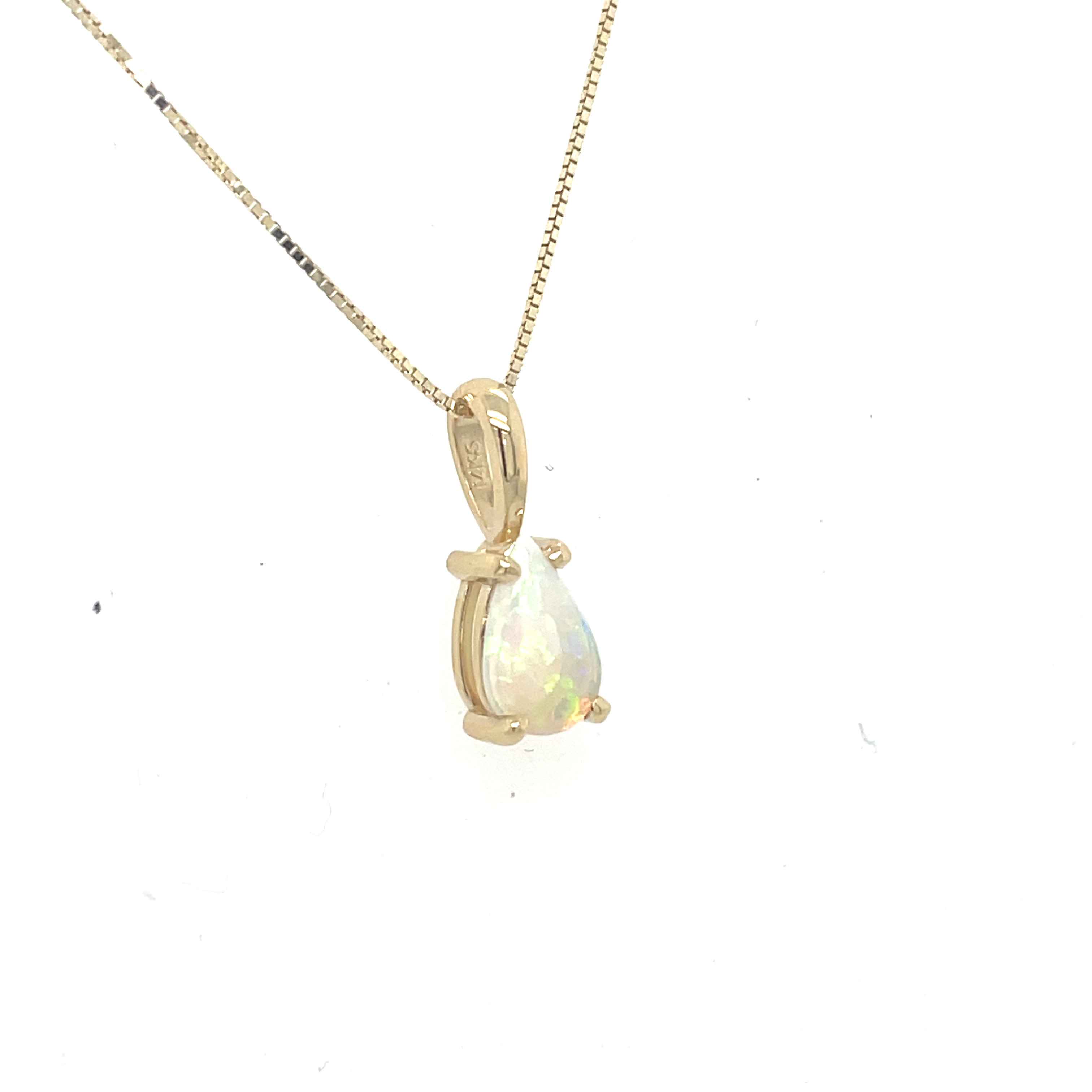 Description 14KY GOLD "SUMMERWIND COLLECTION" PEAR OPAL 4-PRONG PENDANT 14KT YELLOW GOLD- 585, HIGH POLISH"SUMMERWIND COLLECTION"1=.37CT PEAR SHAPED OPAL, PRONG SET HIGH POLISHED BAIL *chain sold separately- shown on a 16" chain