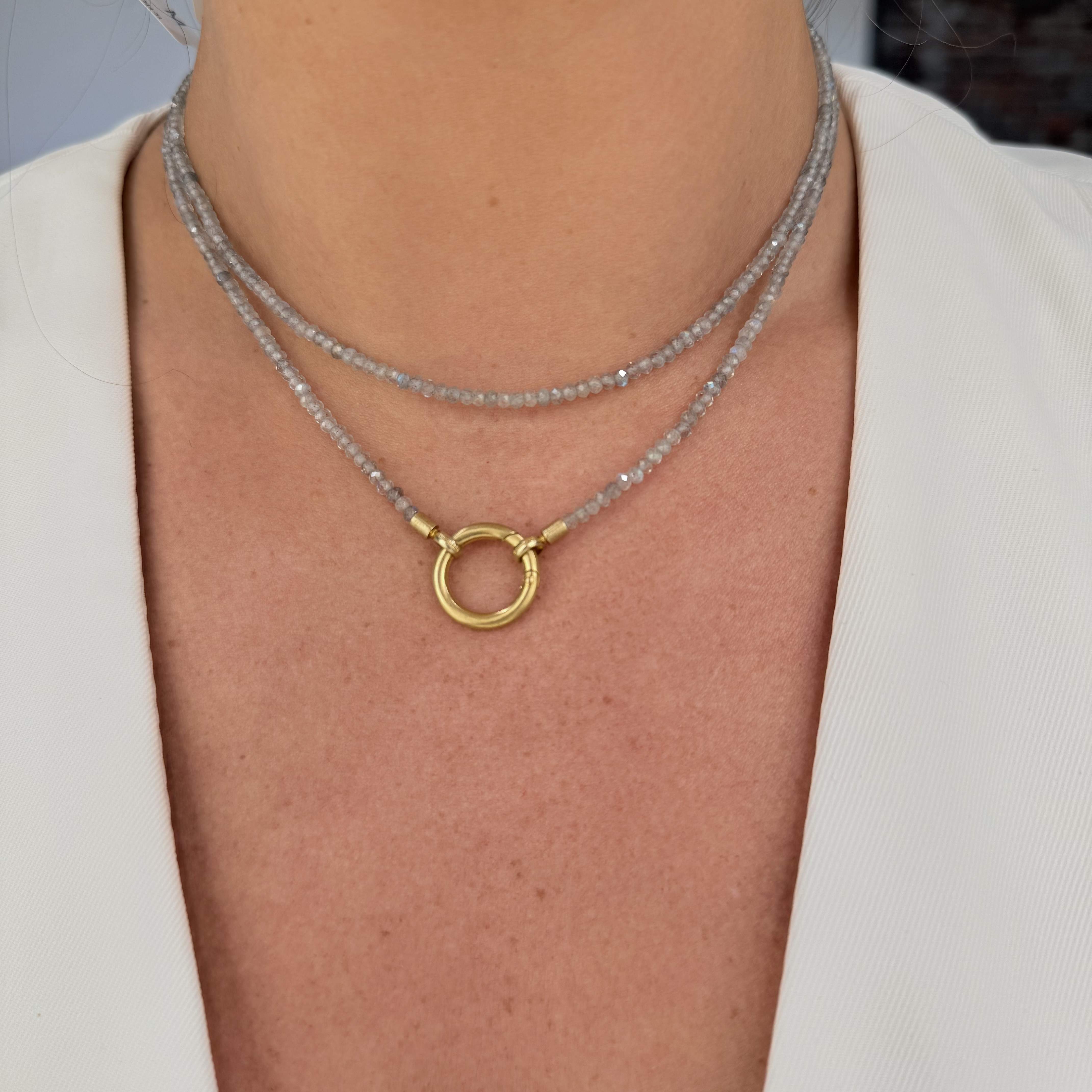 Description 31.5" STERLING SILVER & 24KY GOLD VERMEIL BEADED 3MM LABRADORITE NECKLACE STERLING SILVER AND 24KT YELLOW GOLD VERMEIL-BRUSHED FINISH3MM LABRADORITE BRIOLETTES TOTAL LENGTH: 31.5 INCHES FRONT-FACING INVISIBLE CLASP ELEMENT