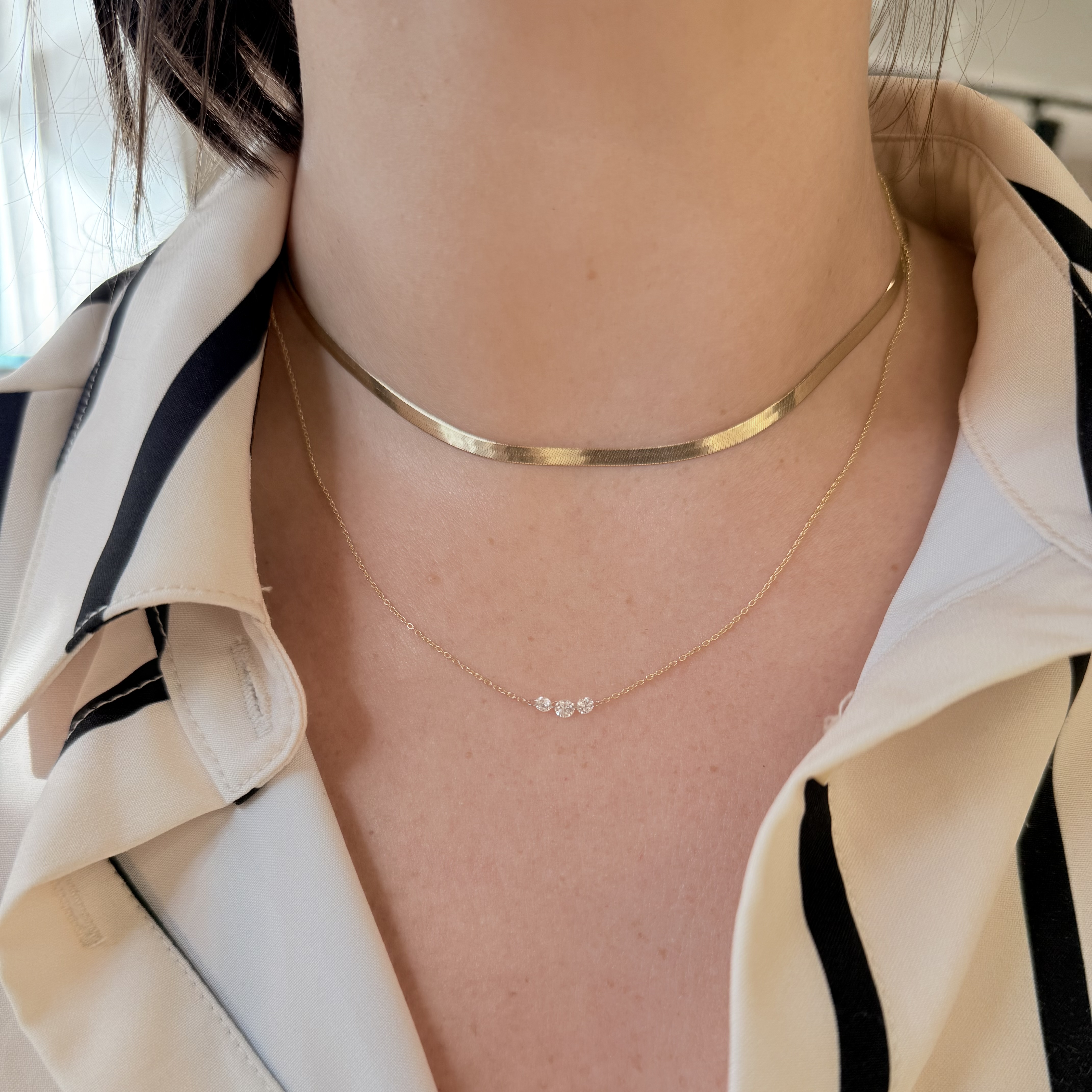 18" 18KY GOLD "FLOATING" TRIO DIAMOND STATION NECKLACE