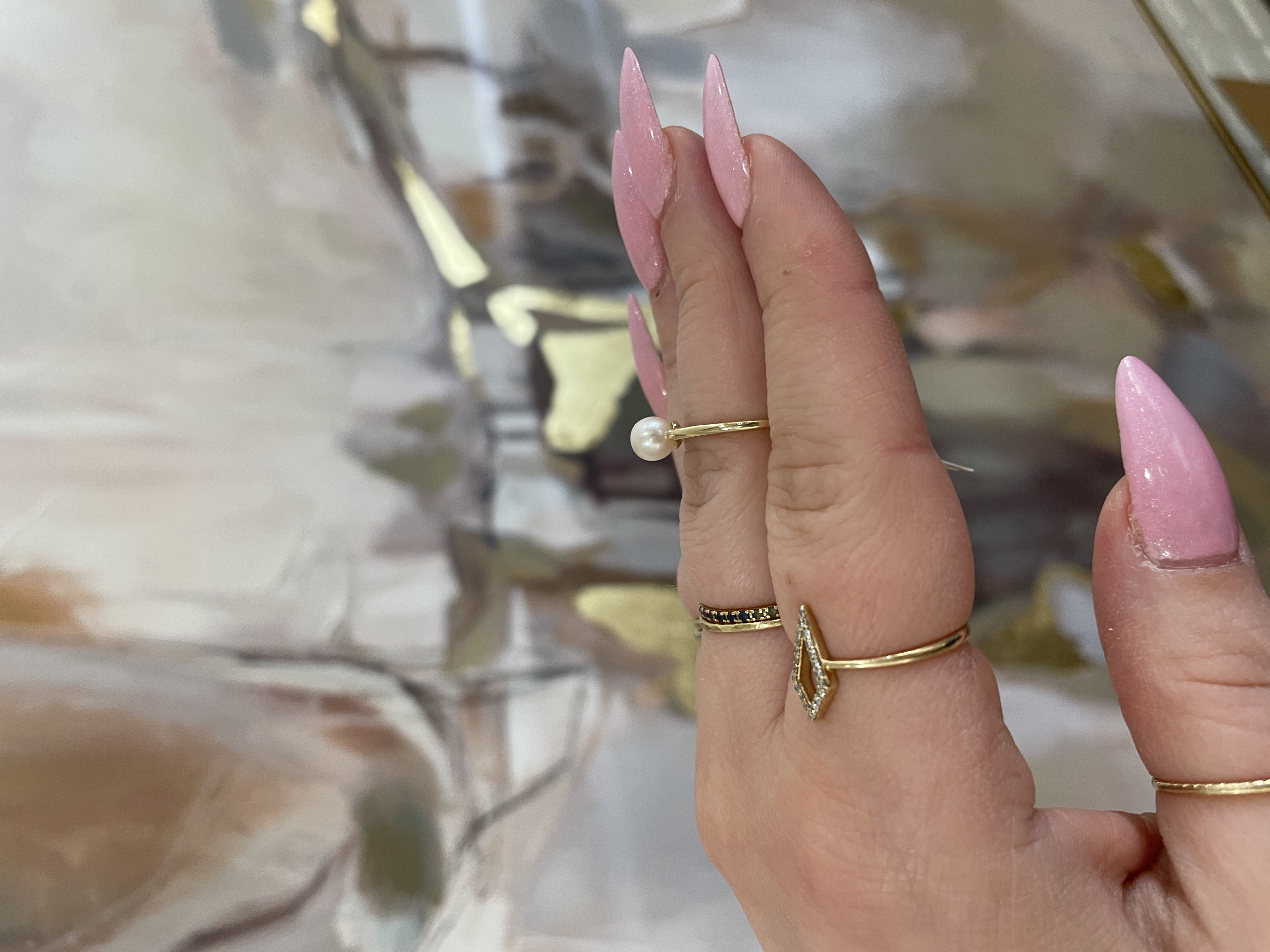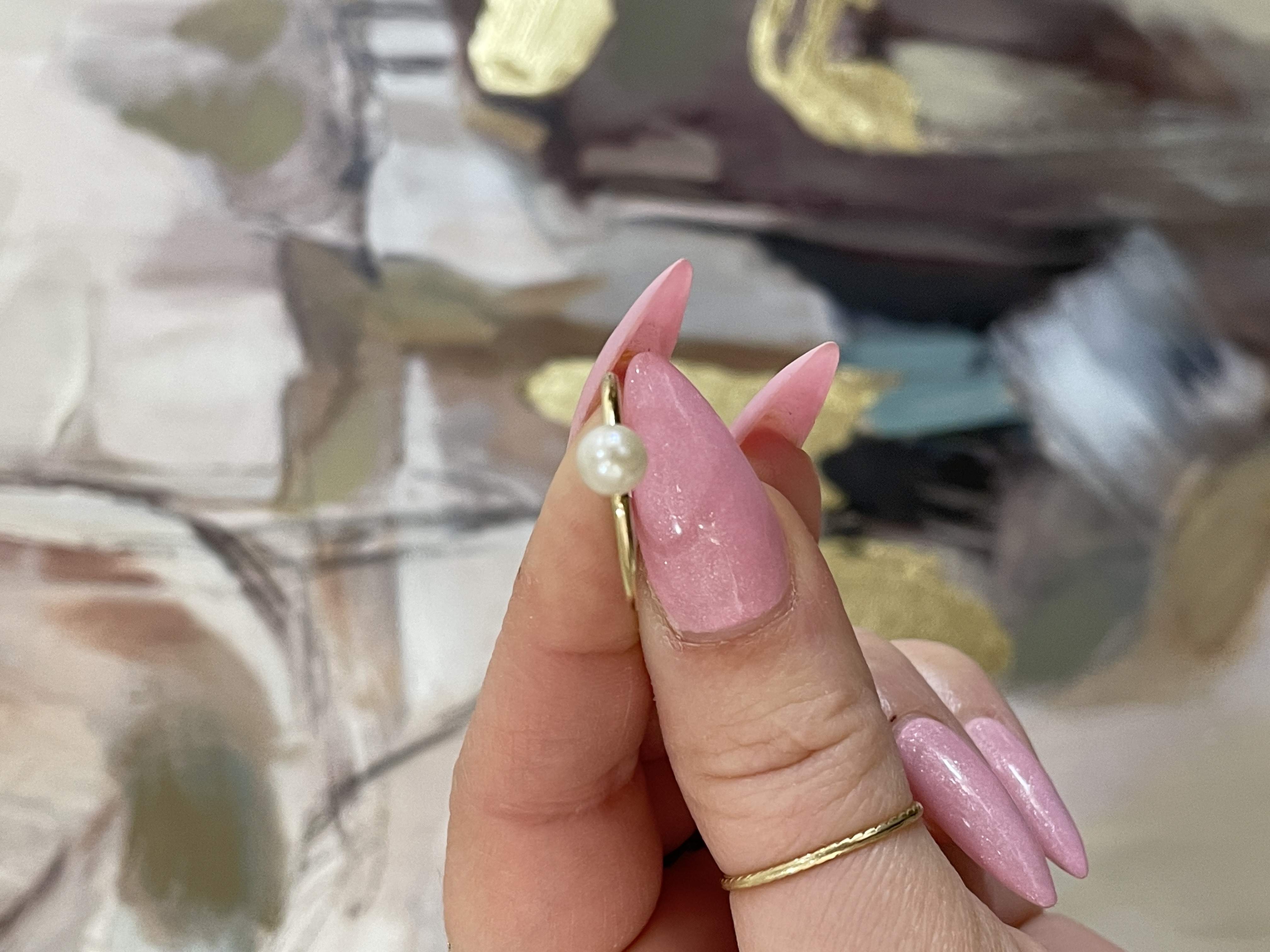 Caring for this delicate piece requires attention to ensure its longevity. It is advised to make this ring the last item you put on and the first you take off, to minimize exposure to potentially damaging substances. Continuous exposure to water should be avoided as it can weaken the epoxy that secures the pearl to the ring, risking its detachment. Moreover, the nacre quality of the pearl can be adversely affected by beauty products, such as perfumes and creams, so it is crucial to wear the ring in a way that minimizes its contact with such products. Following these care instructions will help maintain the ring's beauty and integrity for years to come.