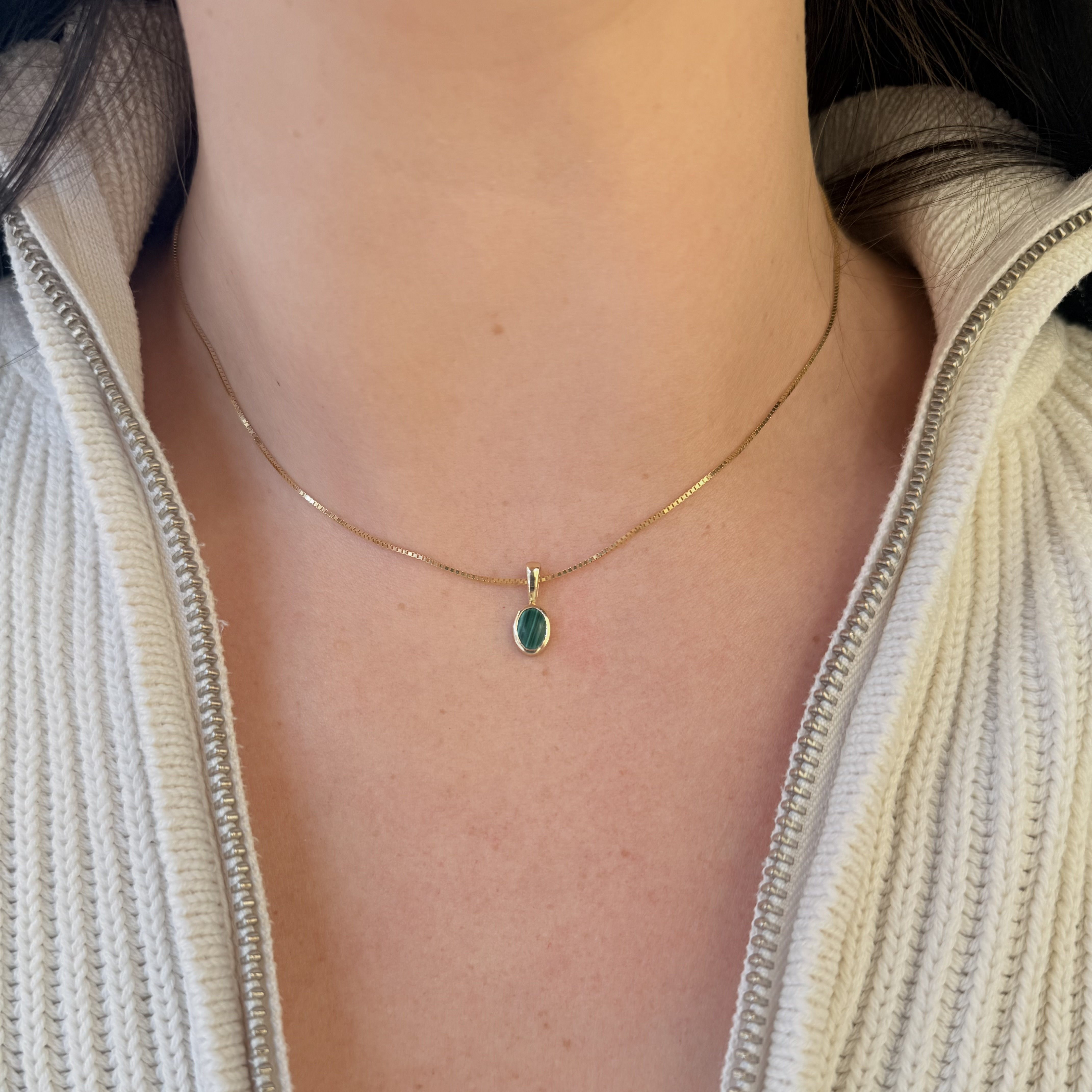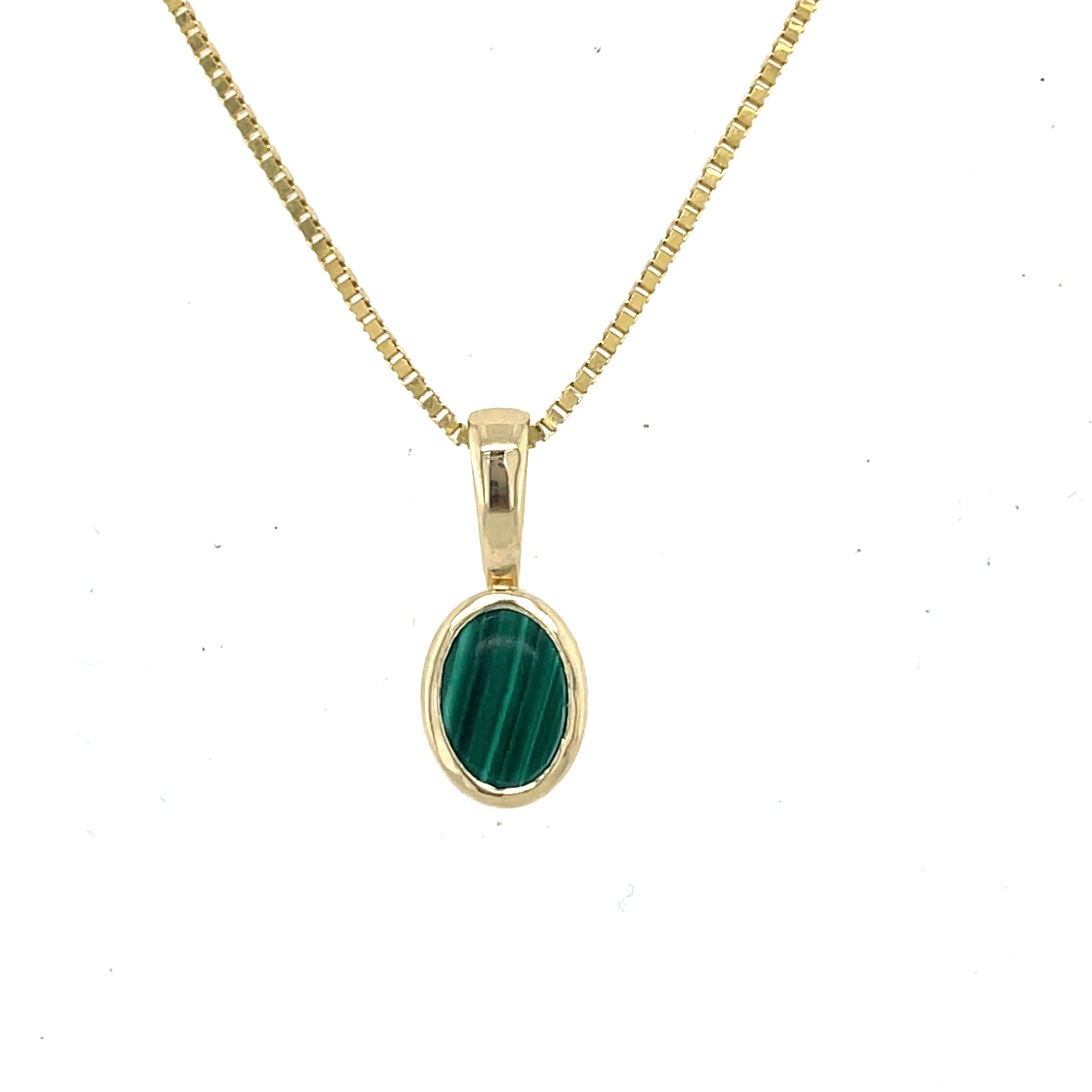 14KY GOLD "SUMMERWIND COLLECTION: JUICY GEMS" BEZEL-SET OVAL MALACHITE PENDANT