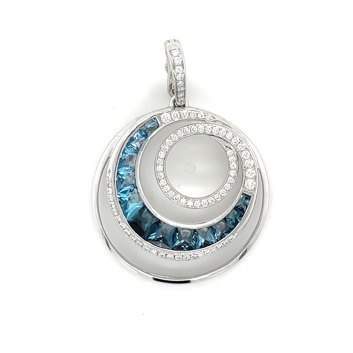 14KW GOLD '"MALIBU COLLECTION" BY BELLARRI™ BLUE TOPAZ AND DIAMOND ACCENTED PENDANT WITH ENHANCER BAIL