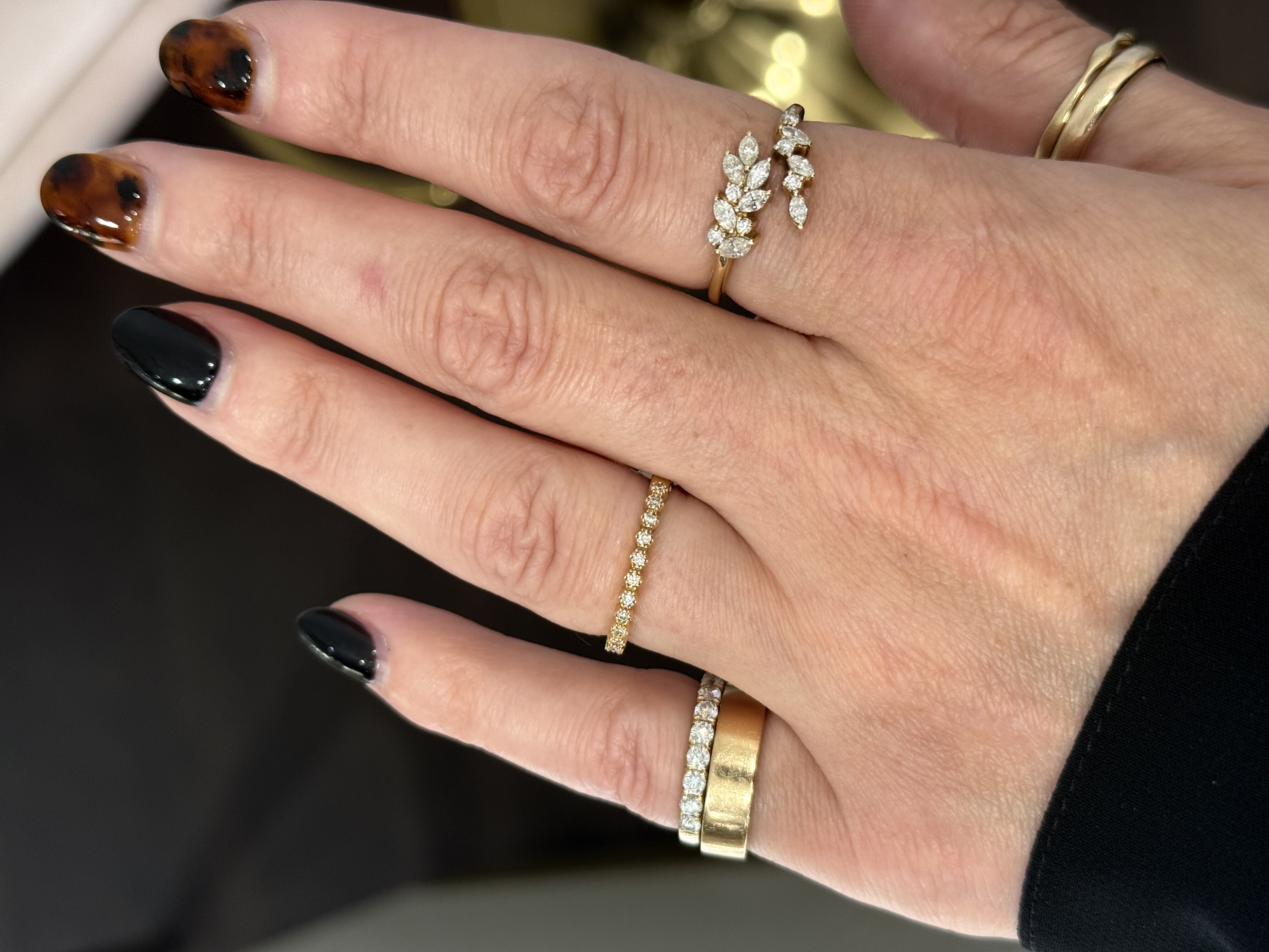 14KY GOLD STACKABLE DIAMOND BAND WITH HEXAGON SHAPED RIMS