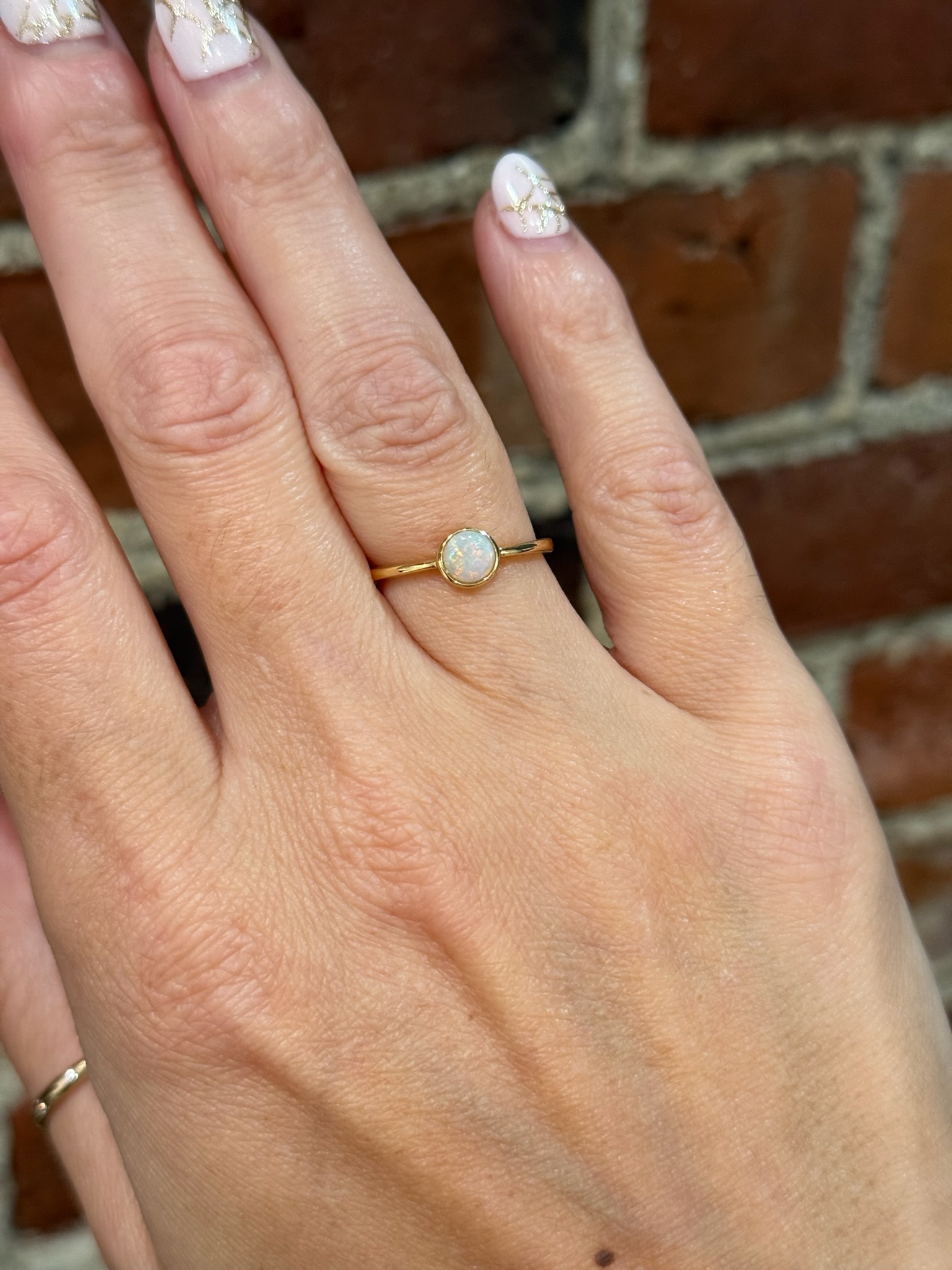 Description 14KY GOLD ROUND BEZEL SET .31CT AUSTRALIAN OPAL RING 14KT YELLOW GOLD.31CT ROUND AUSTRALIAN OPAL, BEZEL SETFINGER SIZE 7