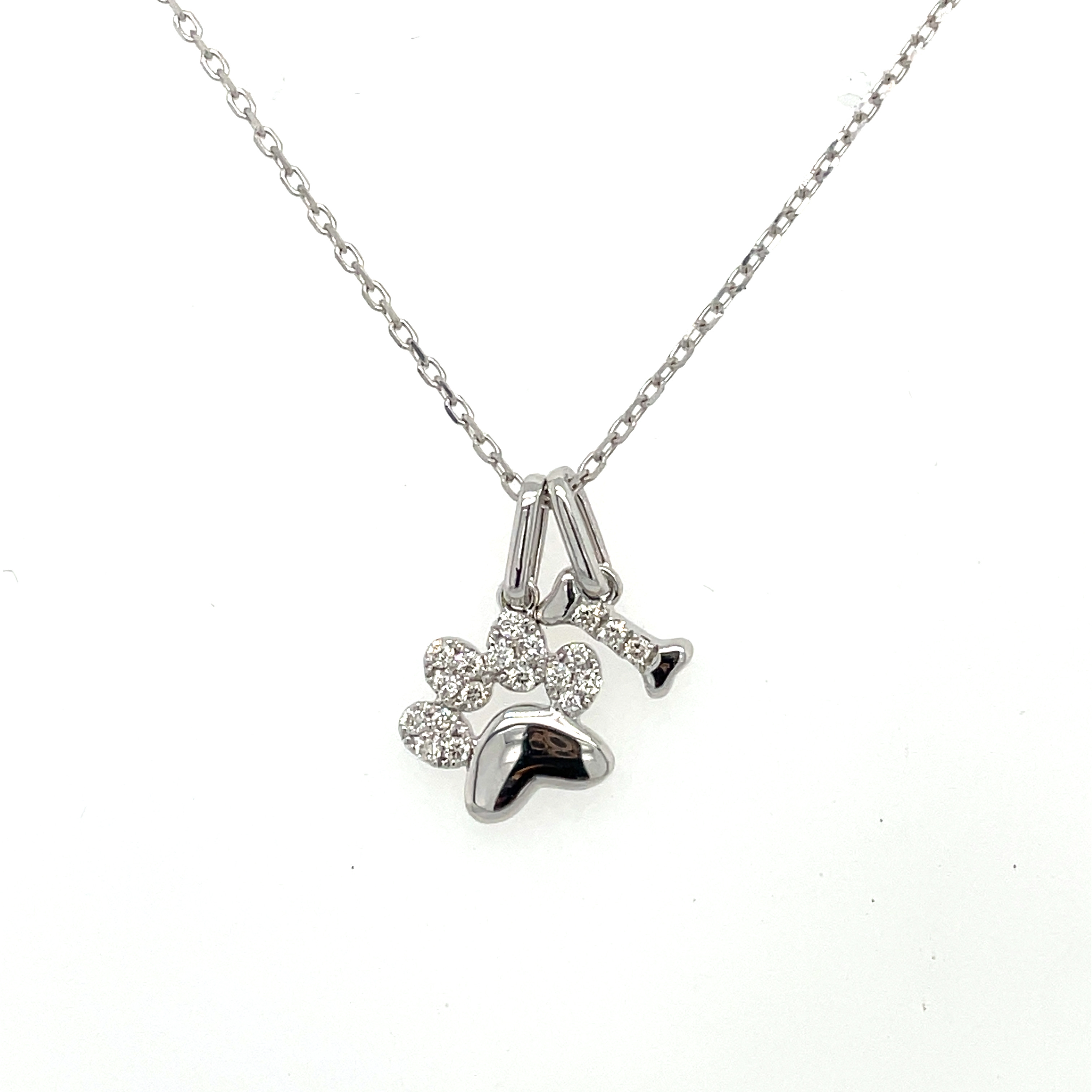 14KW GOLD HALF DIAMOND AND HALF POLISHED DOG PAW & BONE PENDANTS ON 14KW GOLD CABLE CHAIN WITH POLISHED BAILS