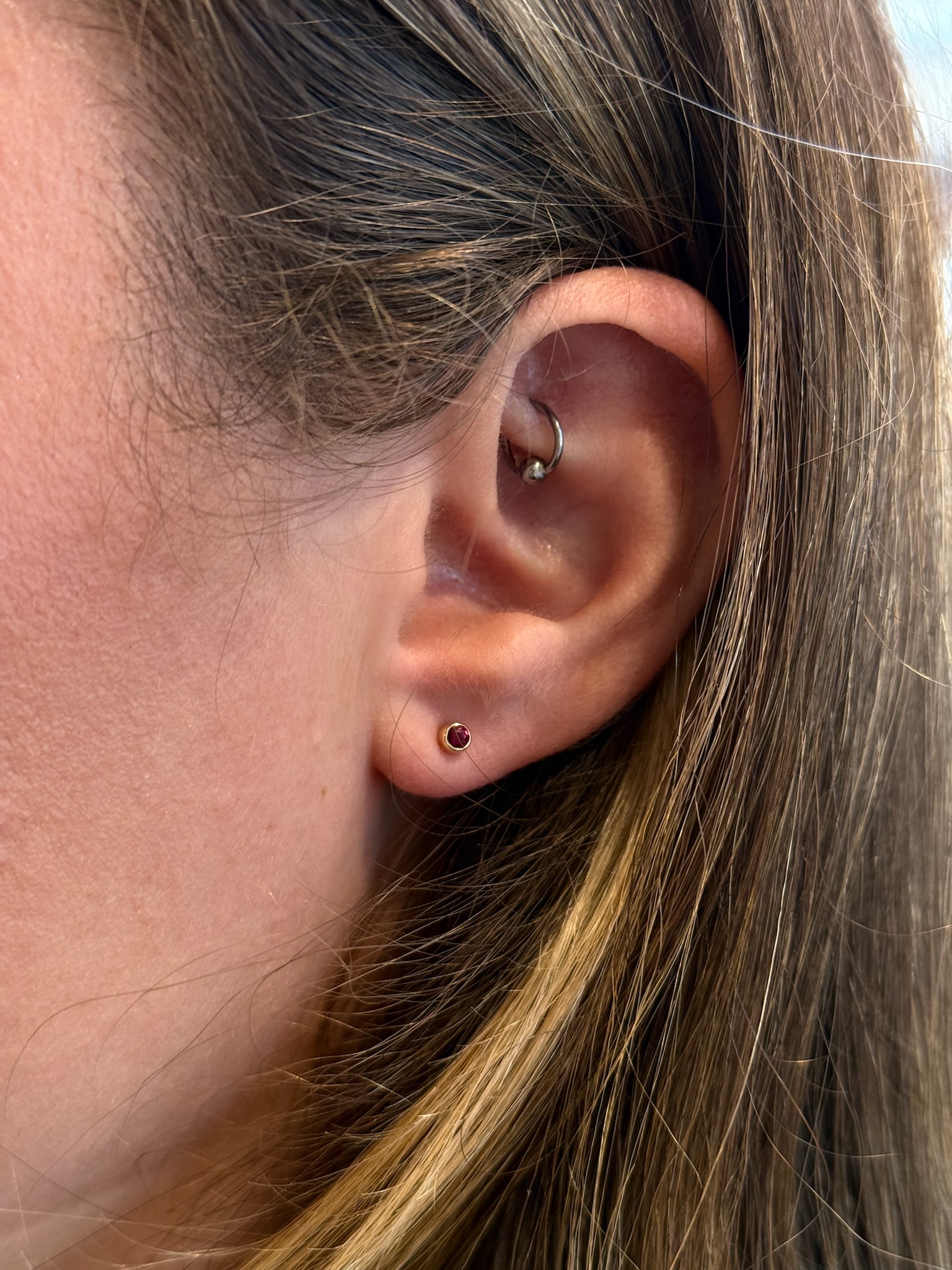 14KY GOLD "SUMMERWIND COLLECTION" BEZEL-SET RUBY STUD EARRINGS
