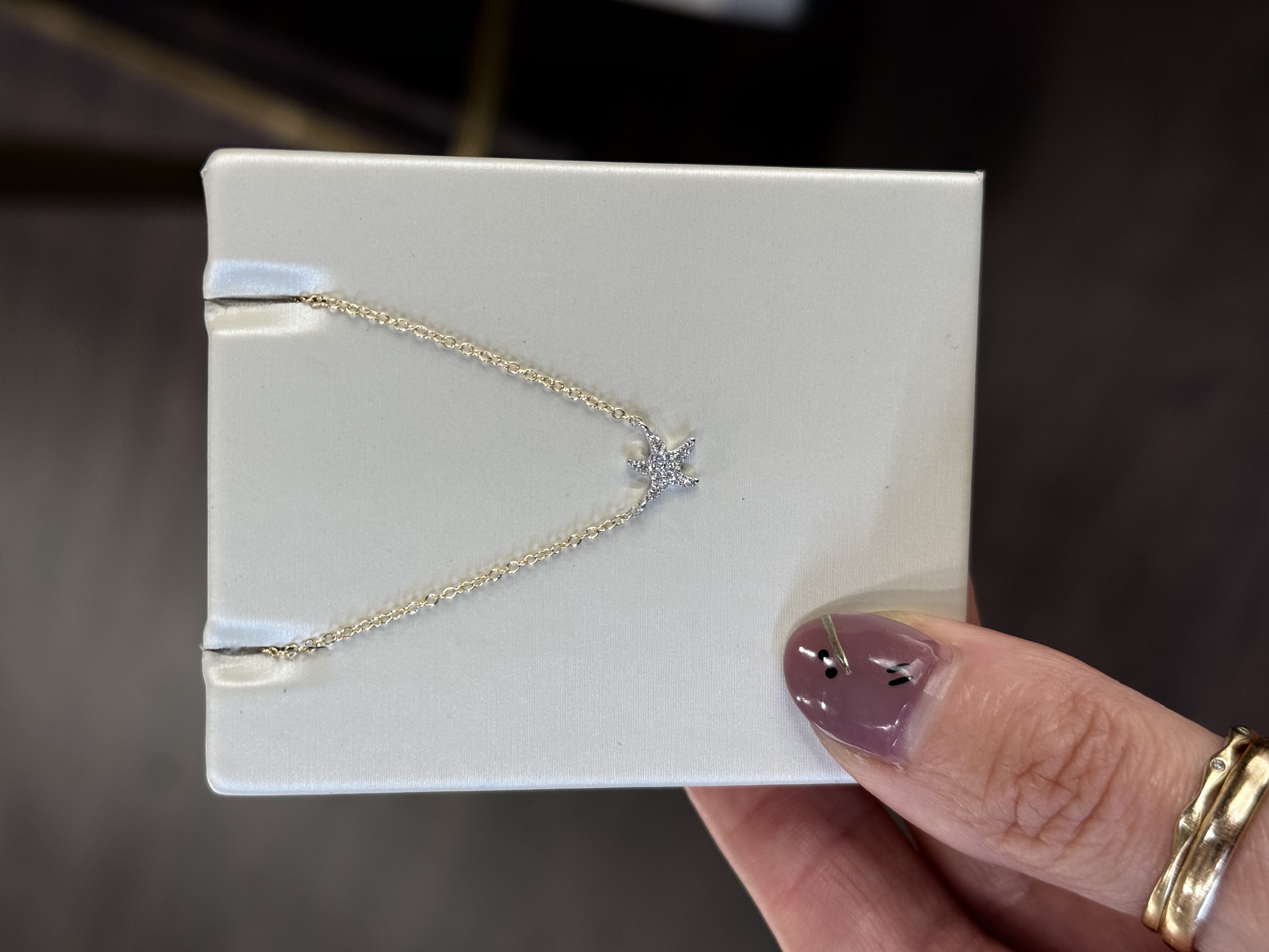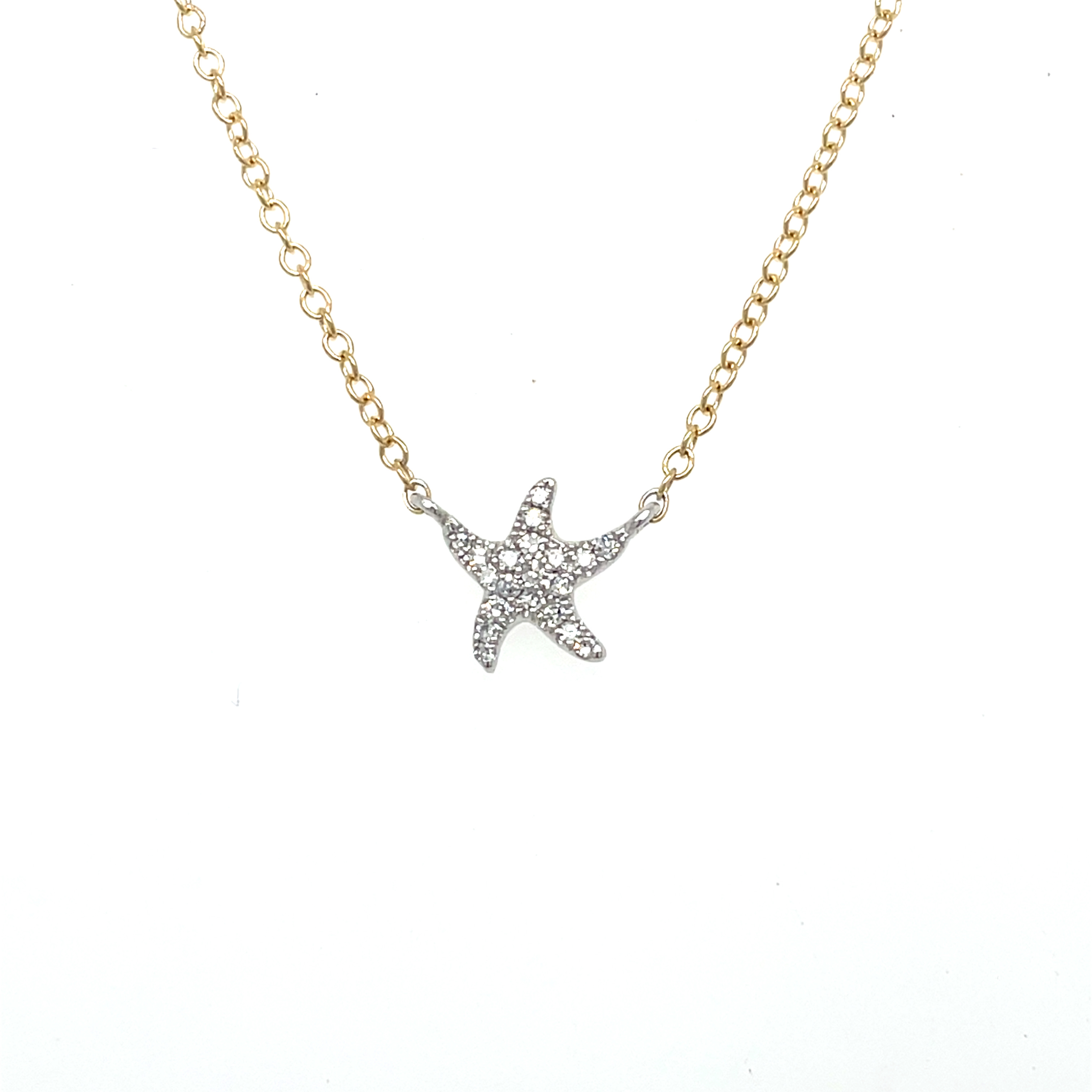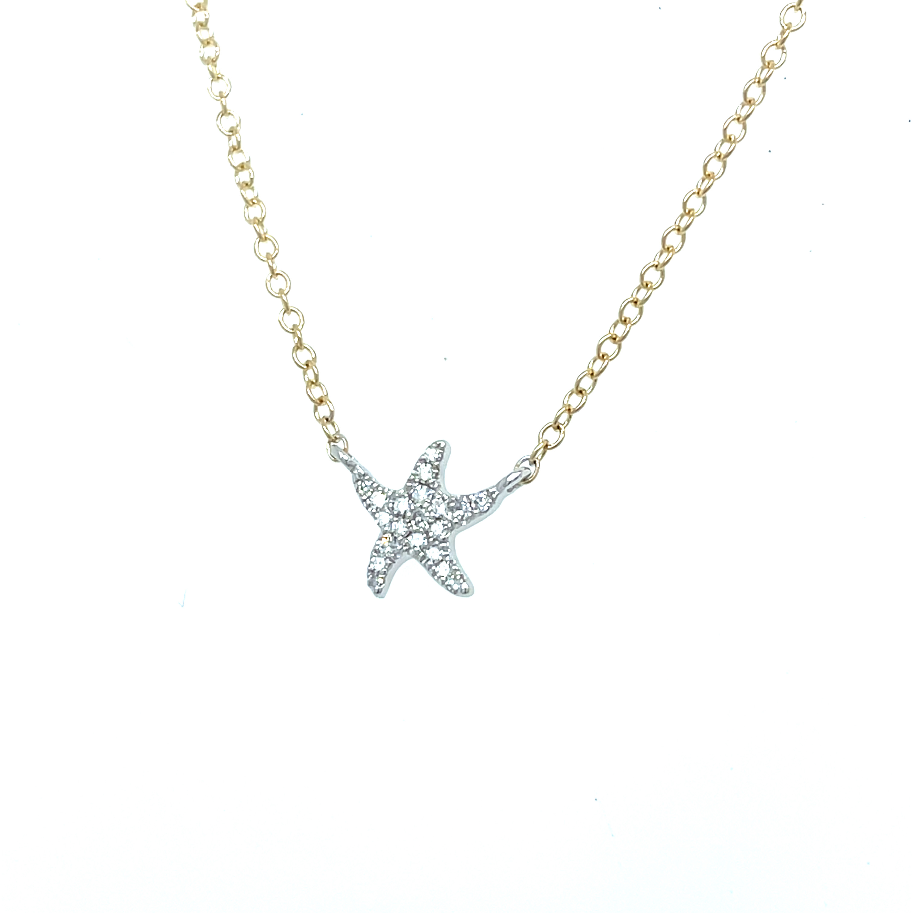 14KY&W GOLD PAVE DIAMOND STAR FISH PENDANT ON CABLE CHAIN