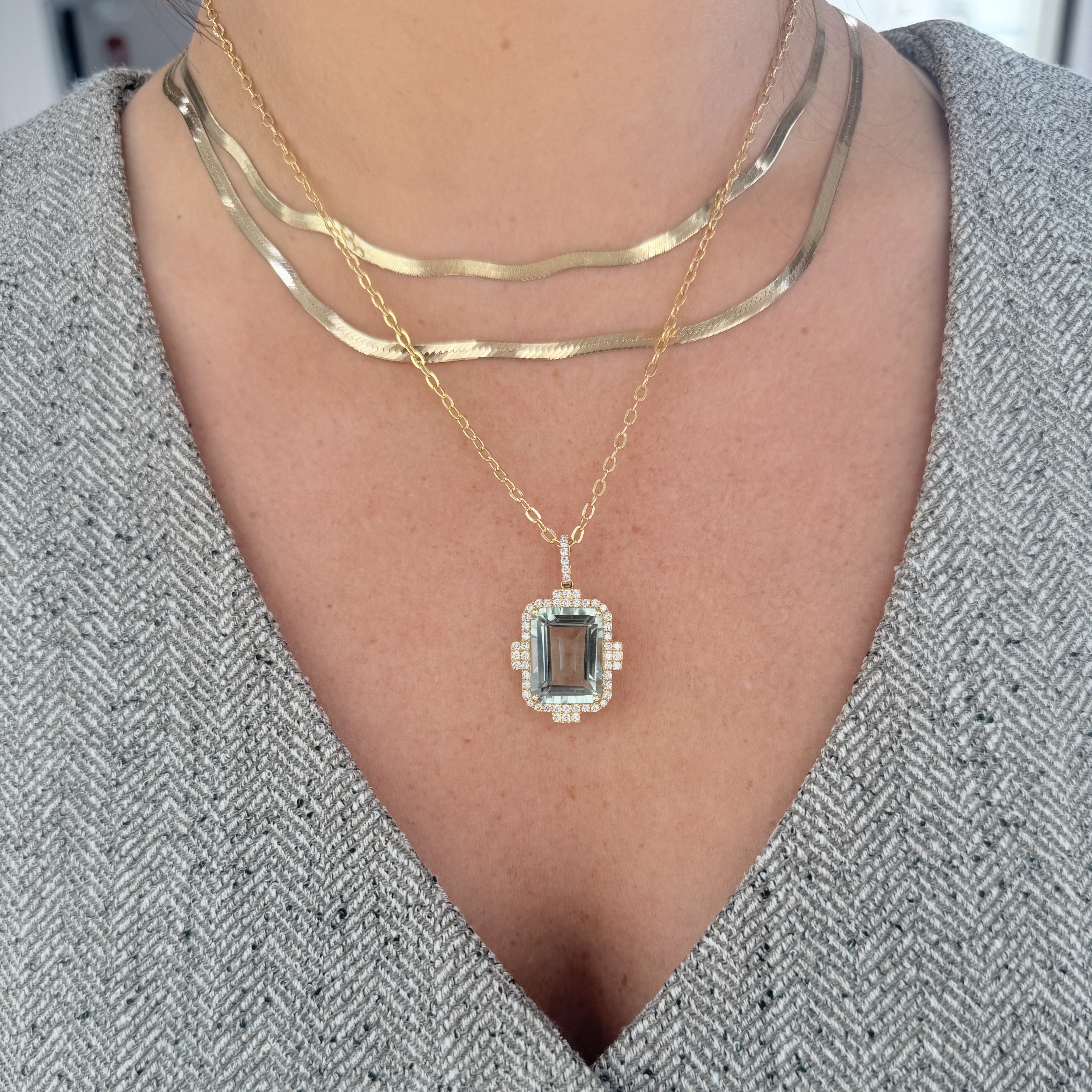 1=11.15CT RECTANGULAR STEP CUT GREEN AMETHYST/PRASIOLITE, PRONG SET SURROUNDED BY DIAMOND HALO