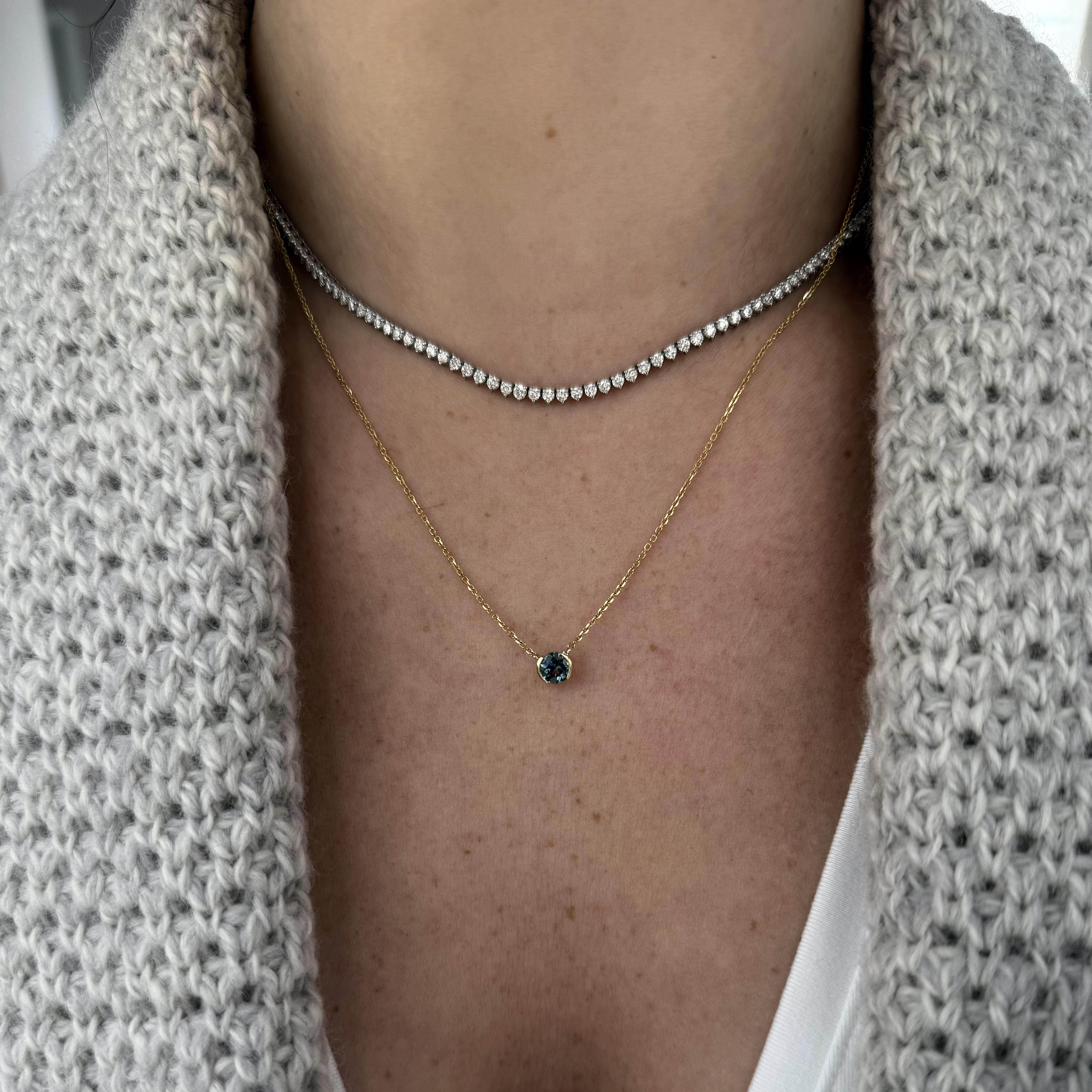 Description 14KY GOLD SEMI-BEZEL SET .59CT MONTANA SAPPHIRE PENDANT 14KT YELLOW GOLD- 585, HIGH POLISH1=.59CT ROUND MONTANA SAPPHIRE, SEMI-BEZEL SET16-18" ADJUSTABLE 14KY GOLD DIAMOND CUT CABLE CHAIN WITH LOBSTER CLASP *actual color may differ from picture