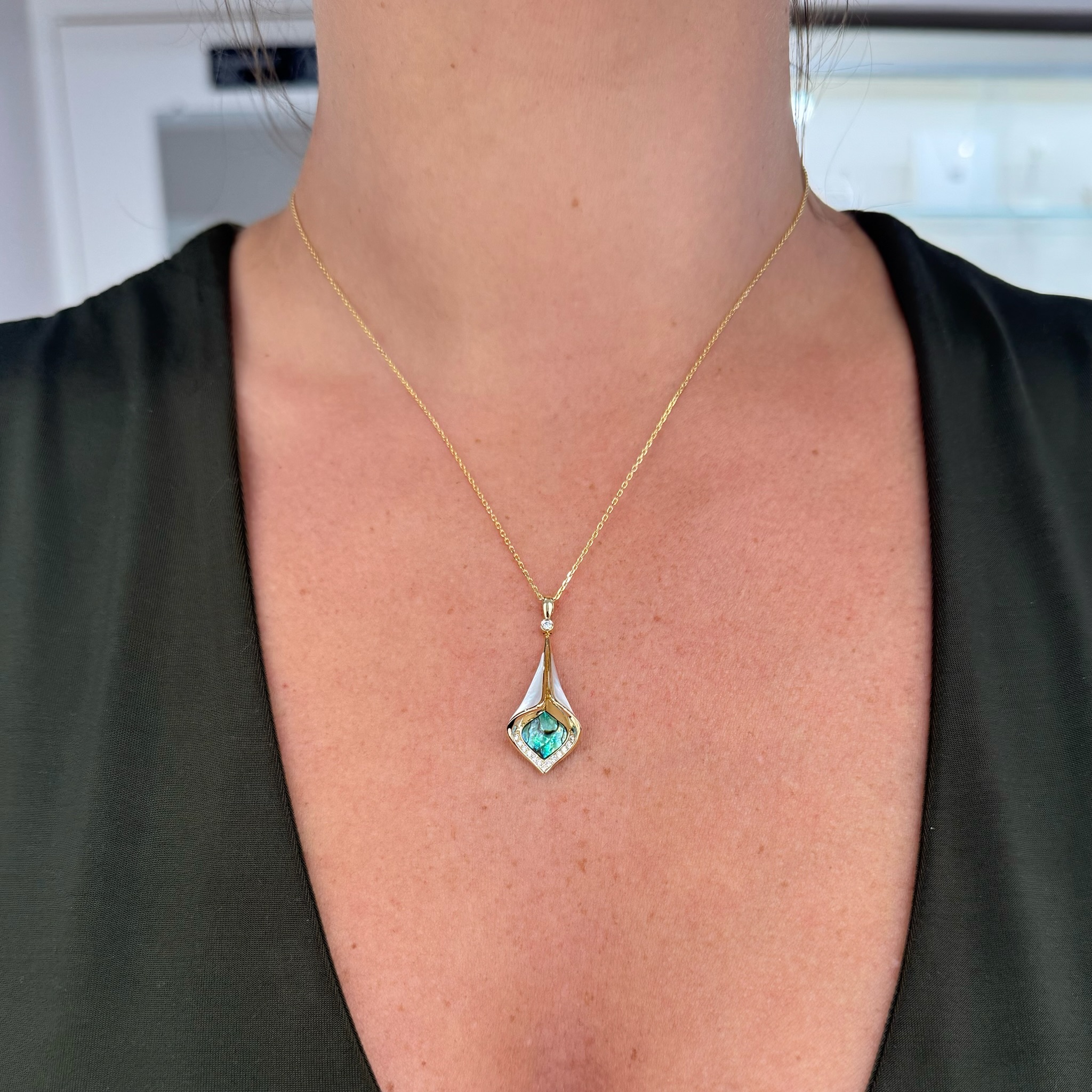 14KY GOLD ABALONE & MOTHER OF PEARL "LOTUS" PENDANT WITH DIAMOND ACCENTS