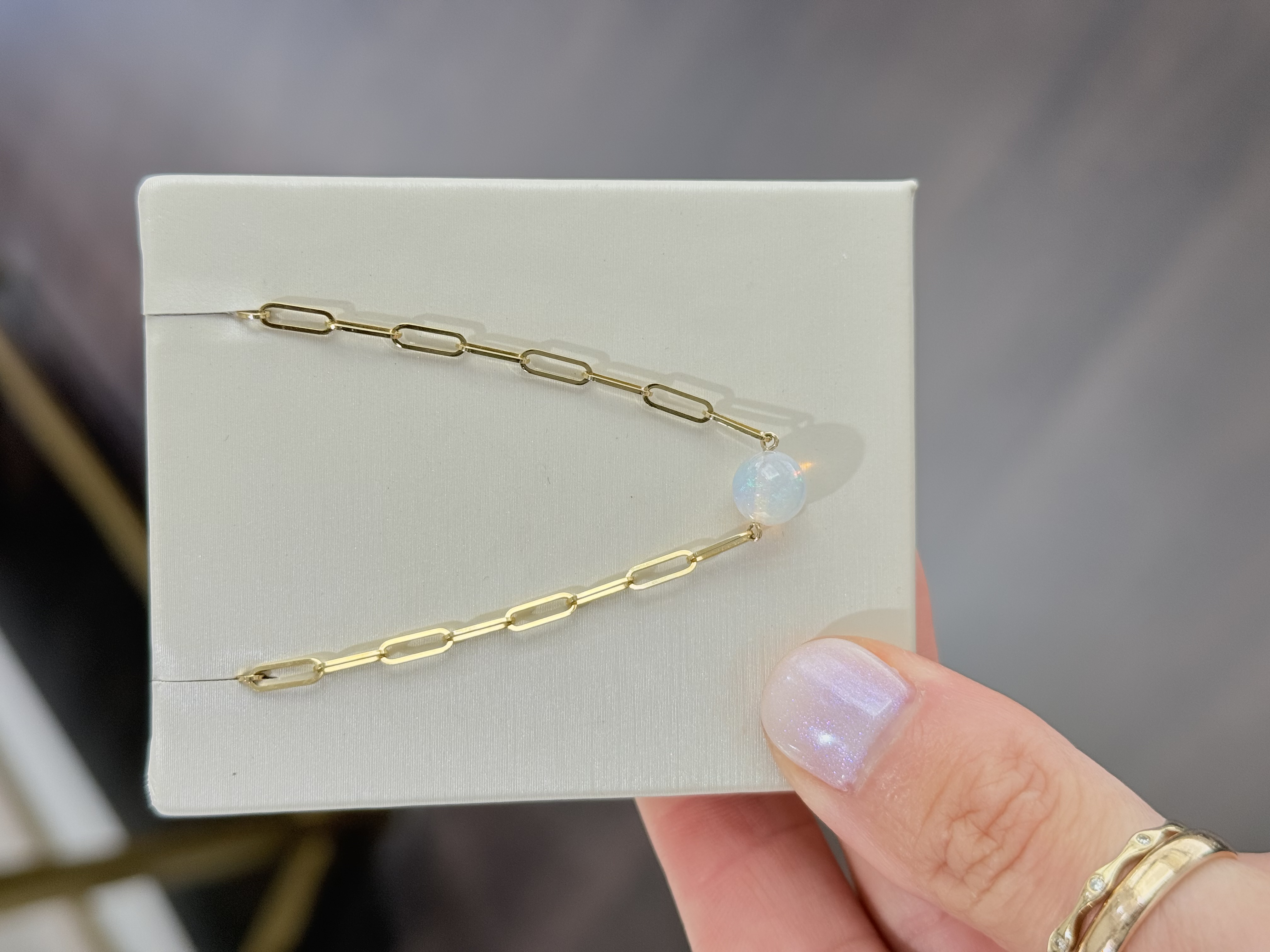 14KY GOLD "OPAL SPHERE COLLECTION" ROUND OPAL PENDANT ON 18" PAPERCLIP CHAIN