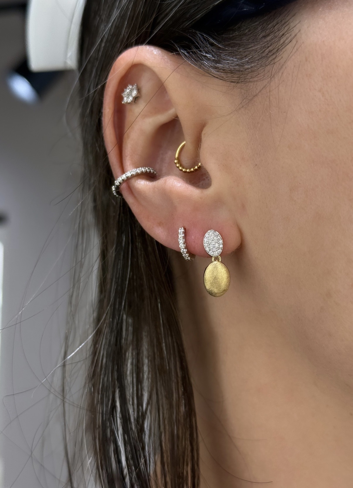 14KY&W GOLD OVAL PAVE DIAMOND EARRINGS WITH OVAL DANGLES WITH MATTE FINISH