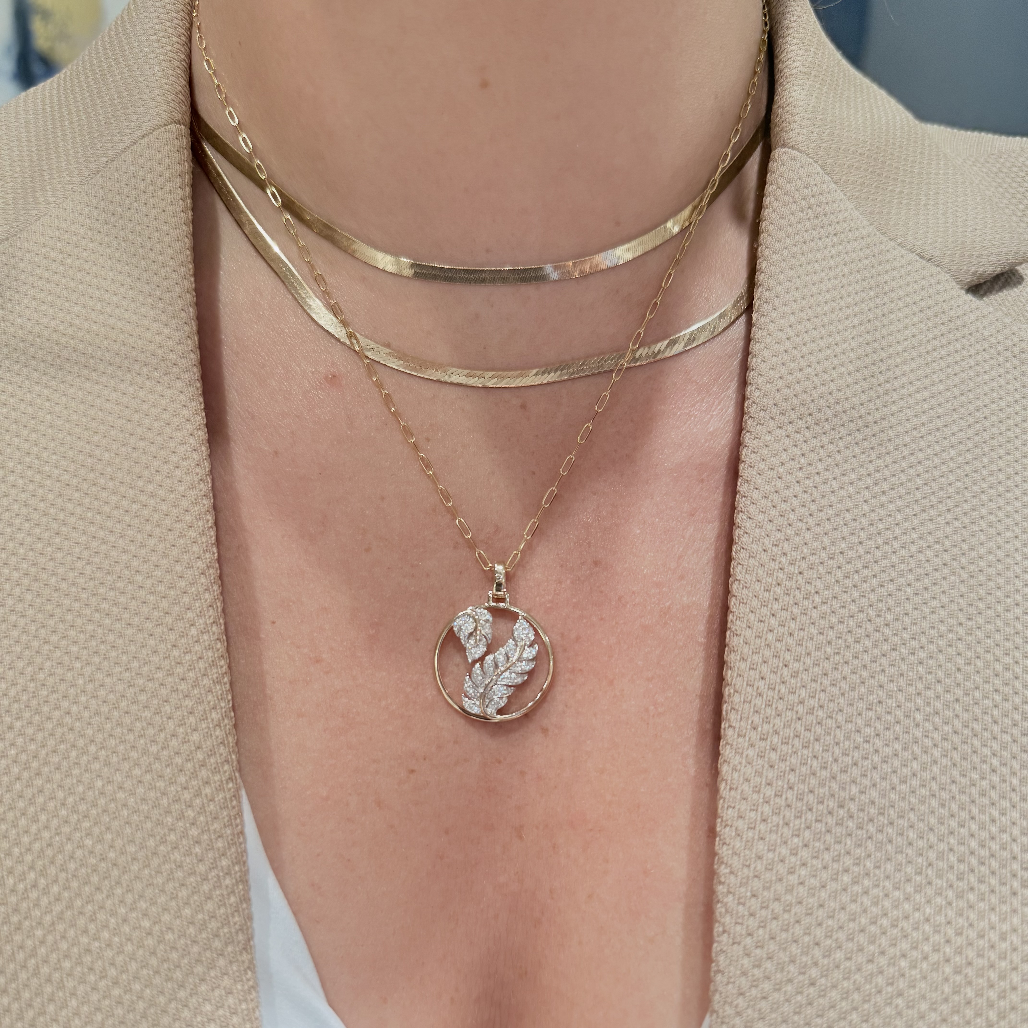 14KY&W GOLD OPEN CIRCLE "FERN" PENDANT ON 18" PAPERCLIP CHAIN