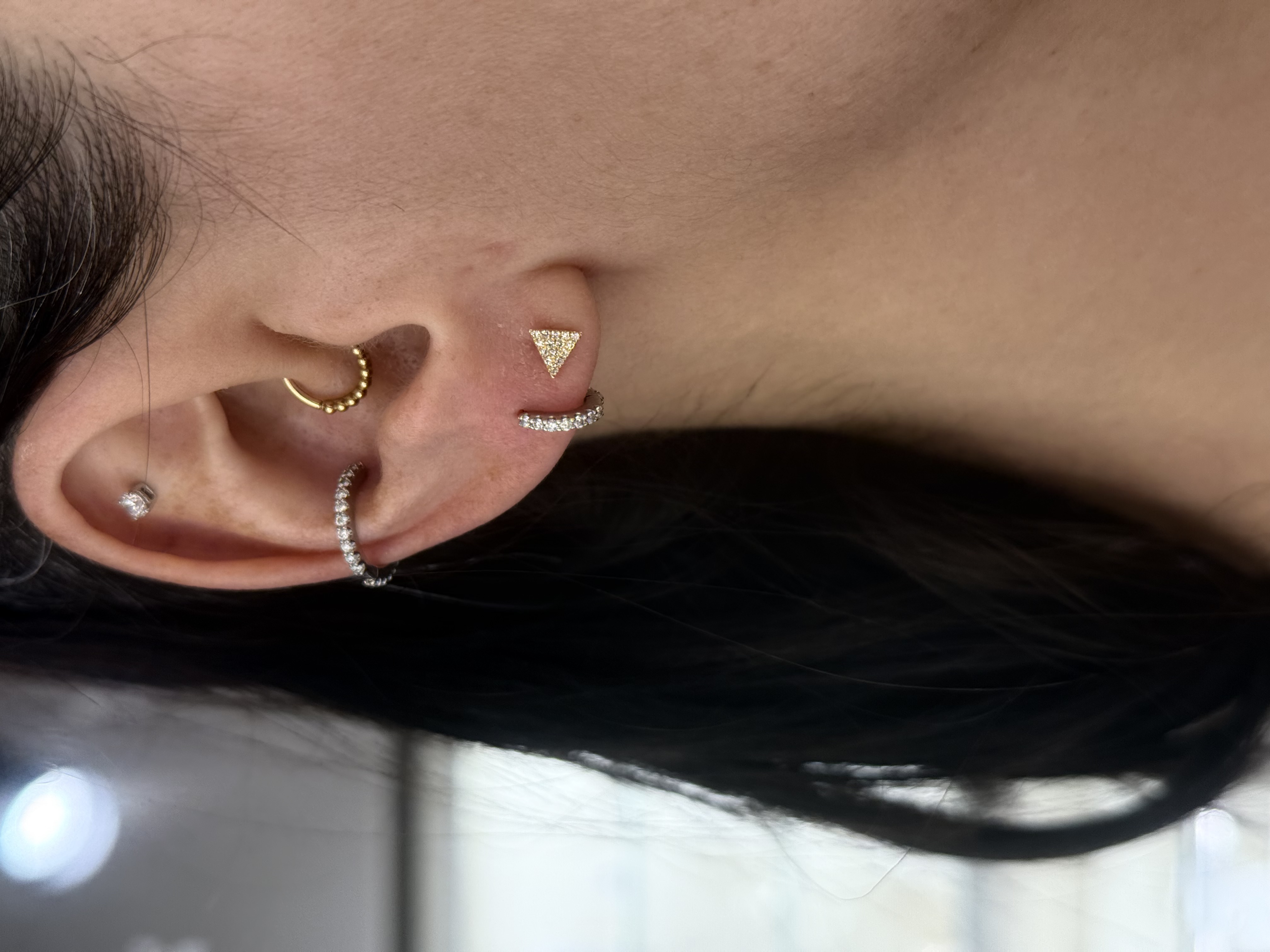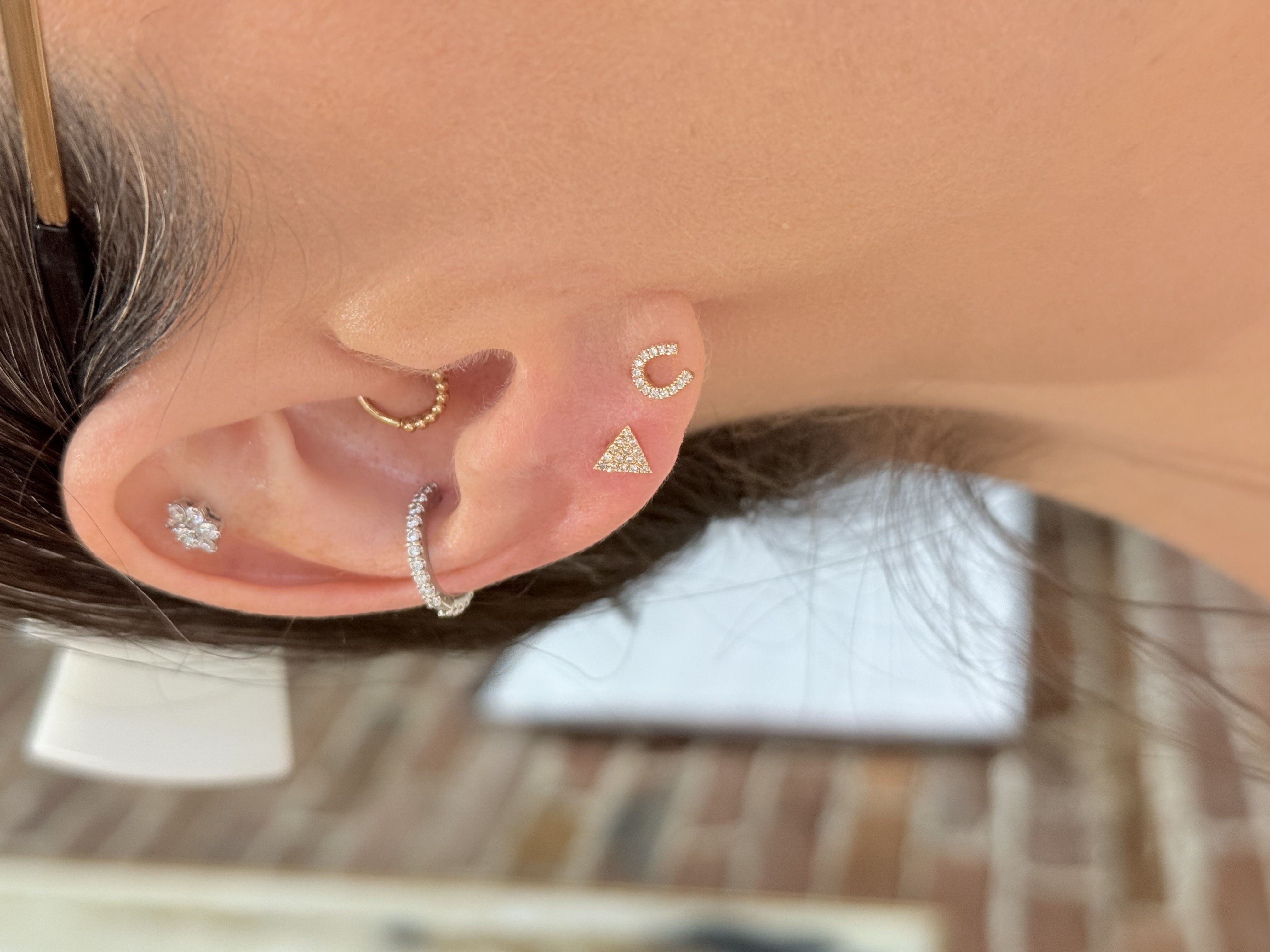 14KY GOLD PAVE DIAMOND TRIANGE SINGLE STUD EARRING