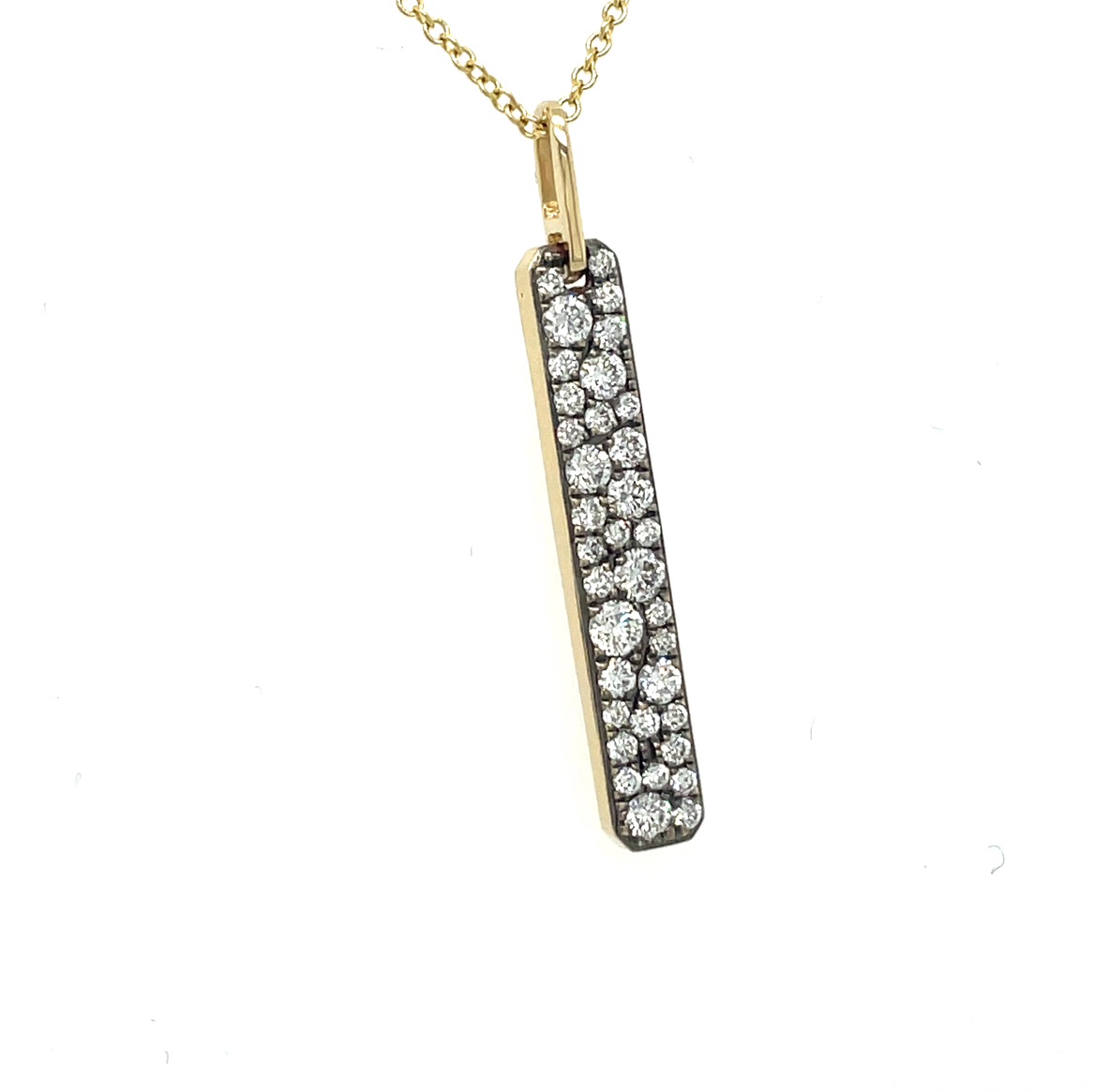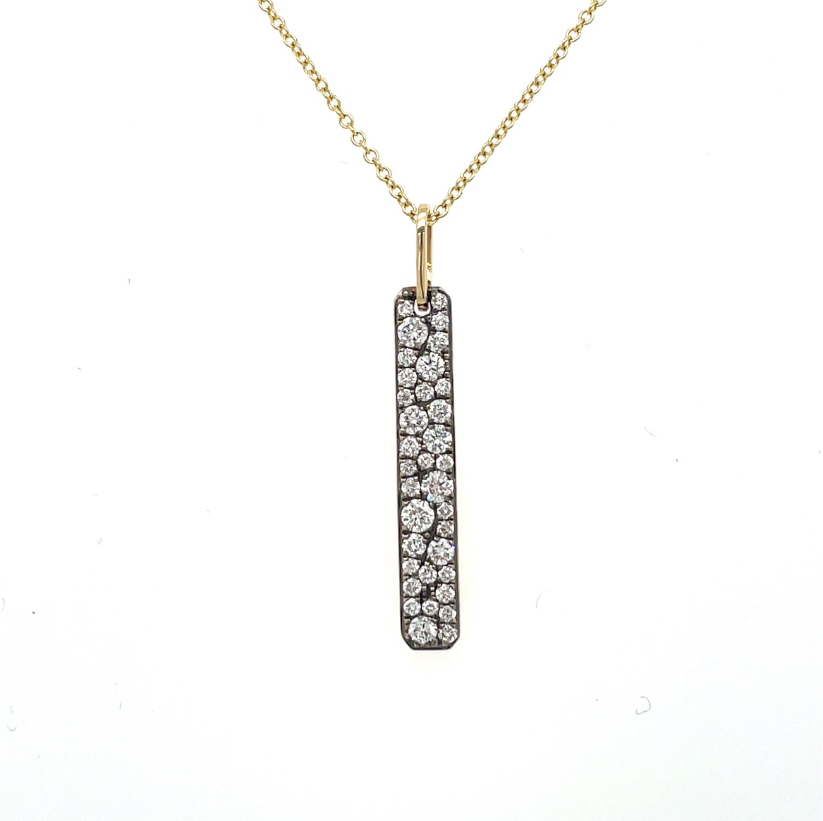 Inspired by the elegance of the night sky, this pendant embodies the enchanting dance of stars across a midnight canvas. The black rhodium-plated prongs symbolize the depth of the universe, while the pave diamonds mimic constellations, each a beacon of light and hope. This exquisite piece tells a story of celestial wonder and is perfect for those who seek a connection to the cosmos. Whether worn as a daily reminder of the beauty above or as a statement piece for special occasions, this pendant is sure to captivate hearts and inspire dreams.