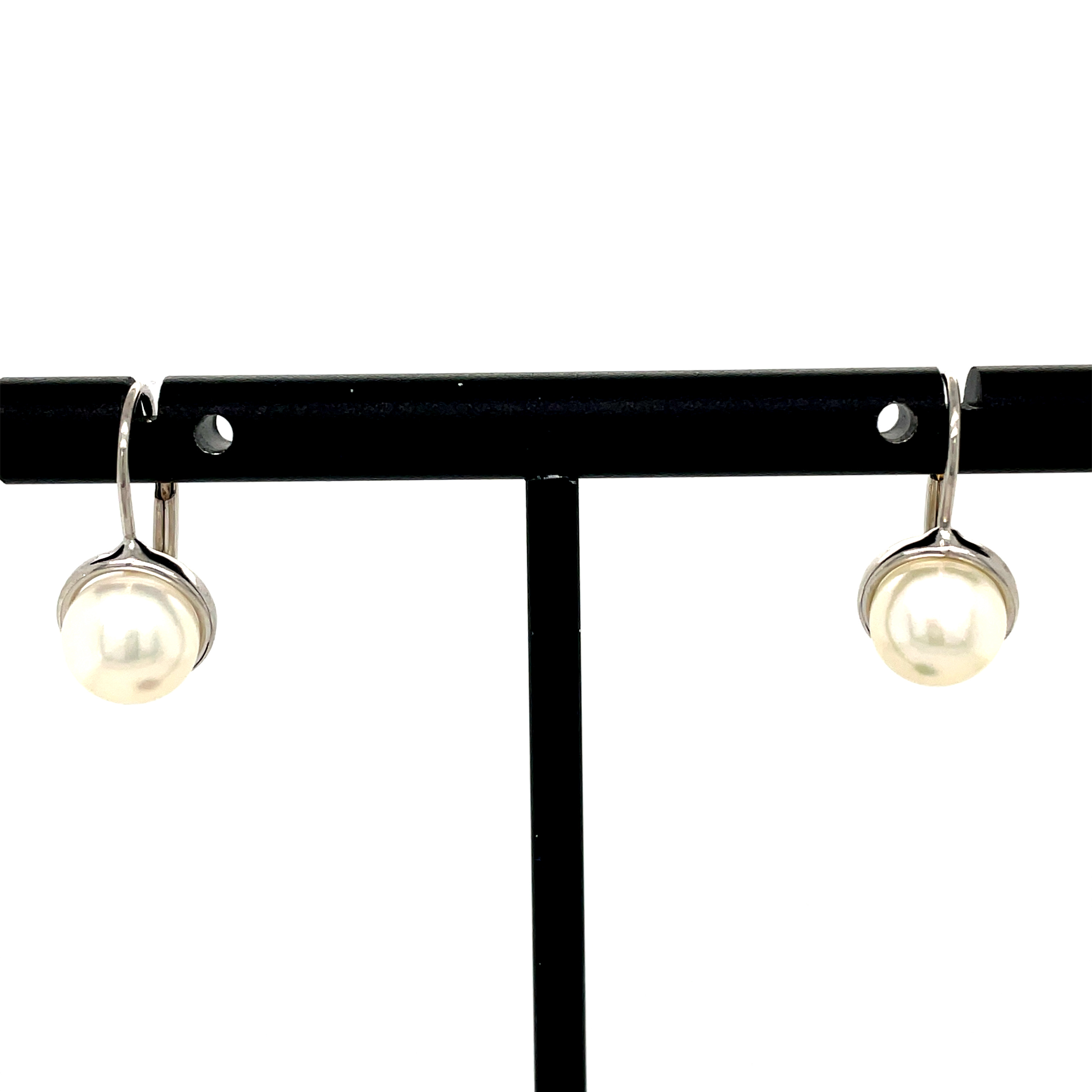 14kt gold 7.5mm cultured freshwater pearl lever back earrings