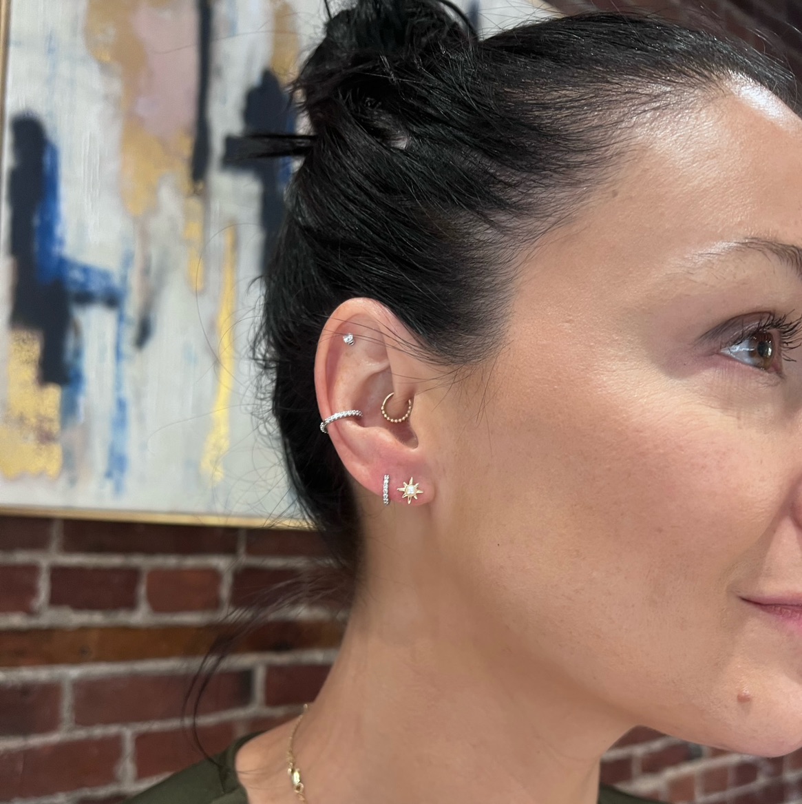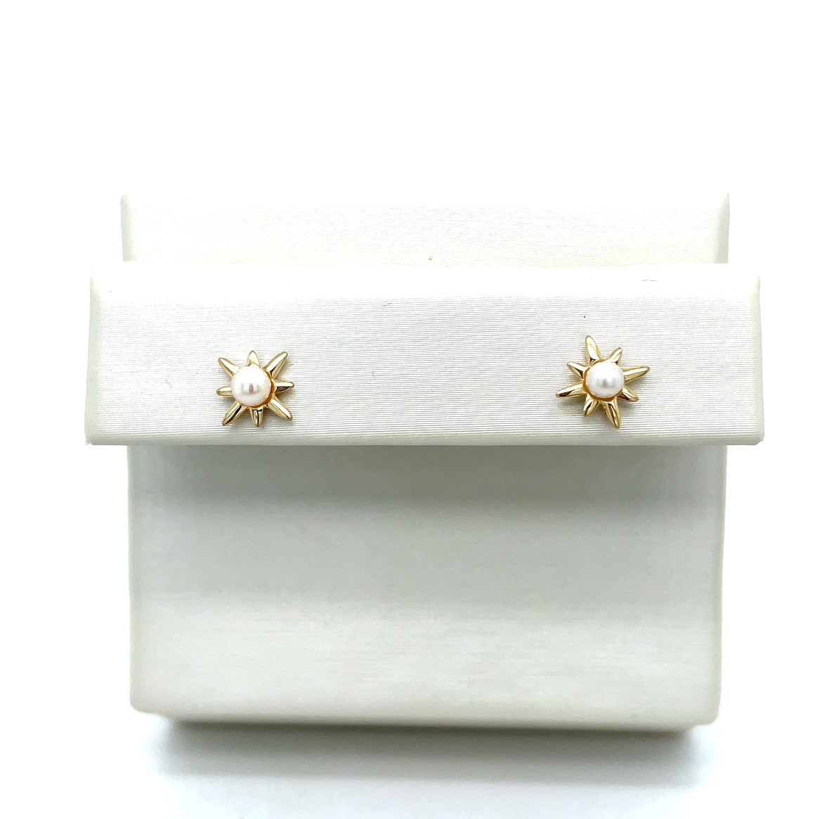 14KY GOLD SUNBURST STUD EARRINGS WITH 3.5MM FRESHWATER PEARLS