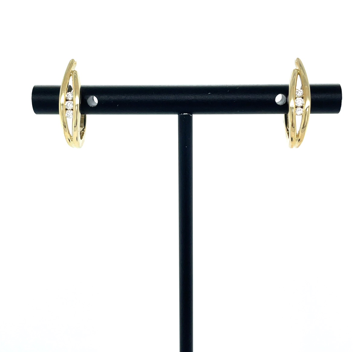 14KY GOLD SMALL HOOPS WITH TENSION SET DIAMONDS 1/10CTTW