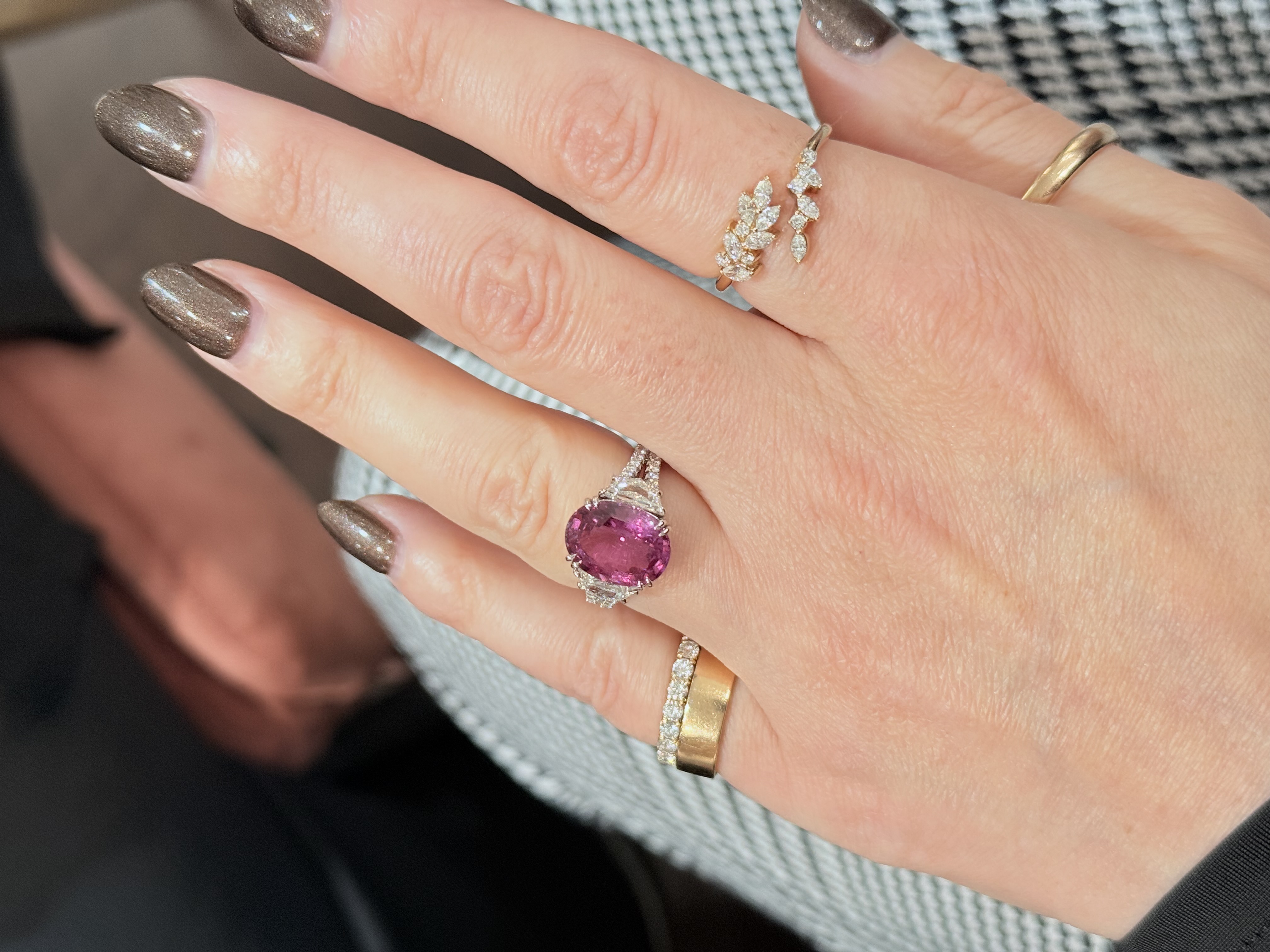 PLATINUM 5.11CT PINK SAPPHIRE AND 1.40CTTW DIAMOND RING, ONE-OF-A-KIND