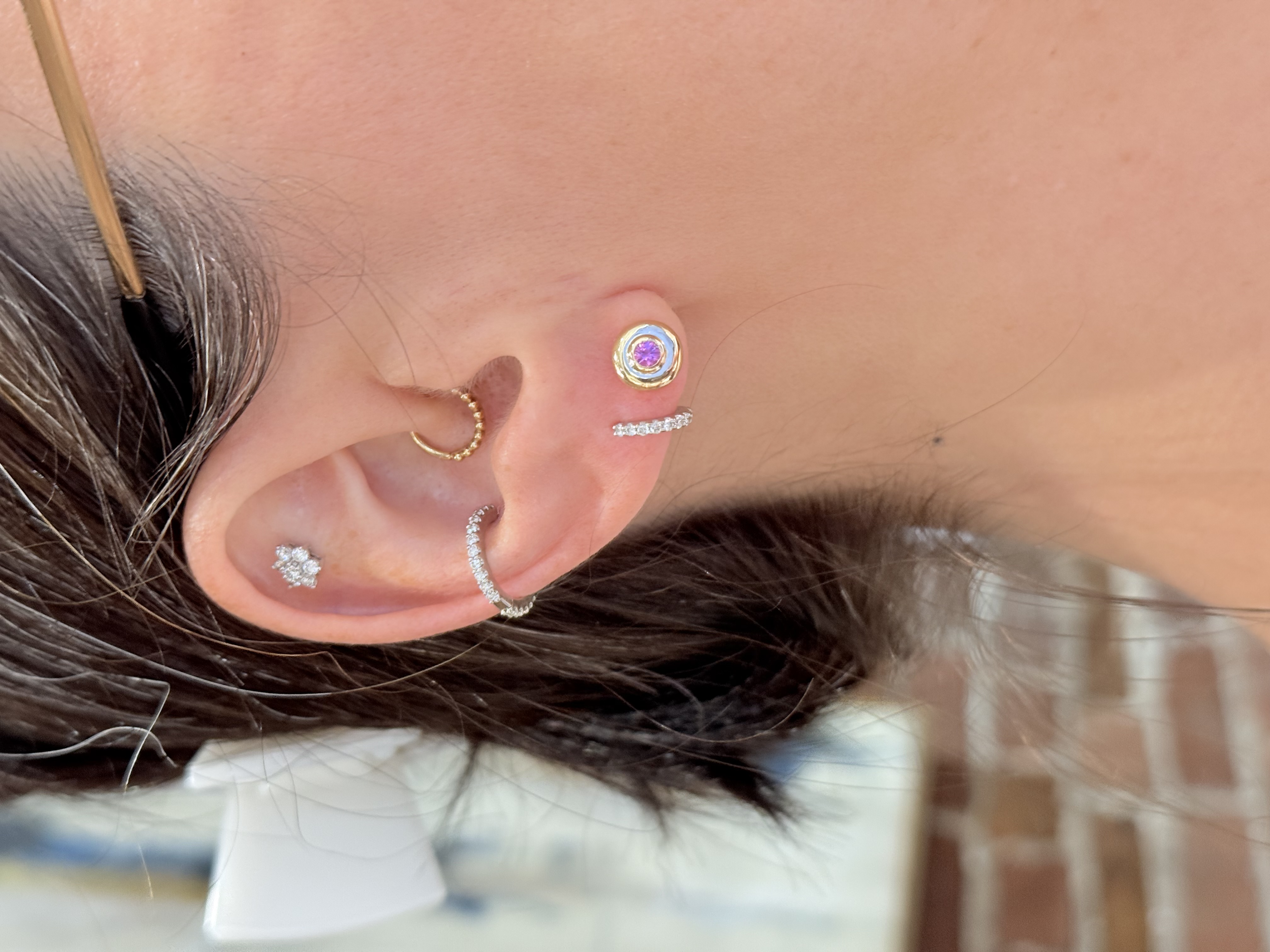 14KY GOLD "SUMMERWIND COLLECTION: JUICY GEMS" PUFFED BEZEL SET PINK SAPPHIRE STUD EARRINGS