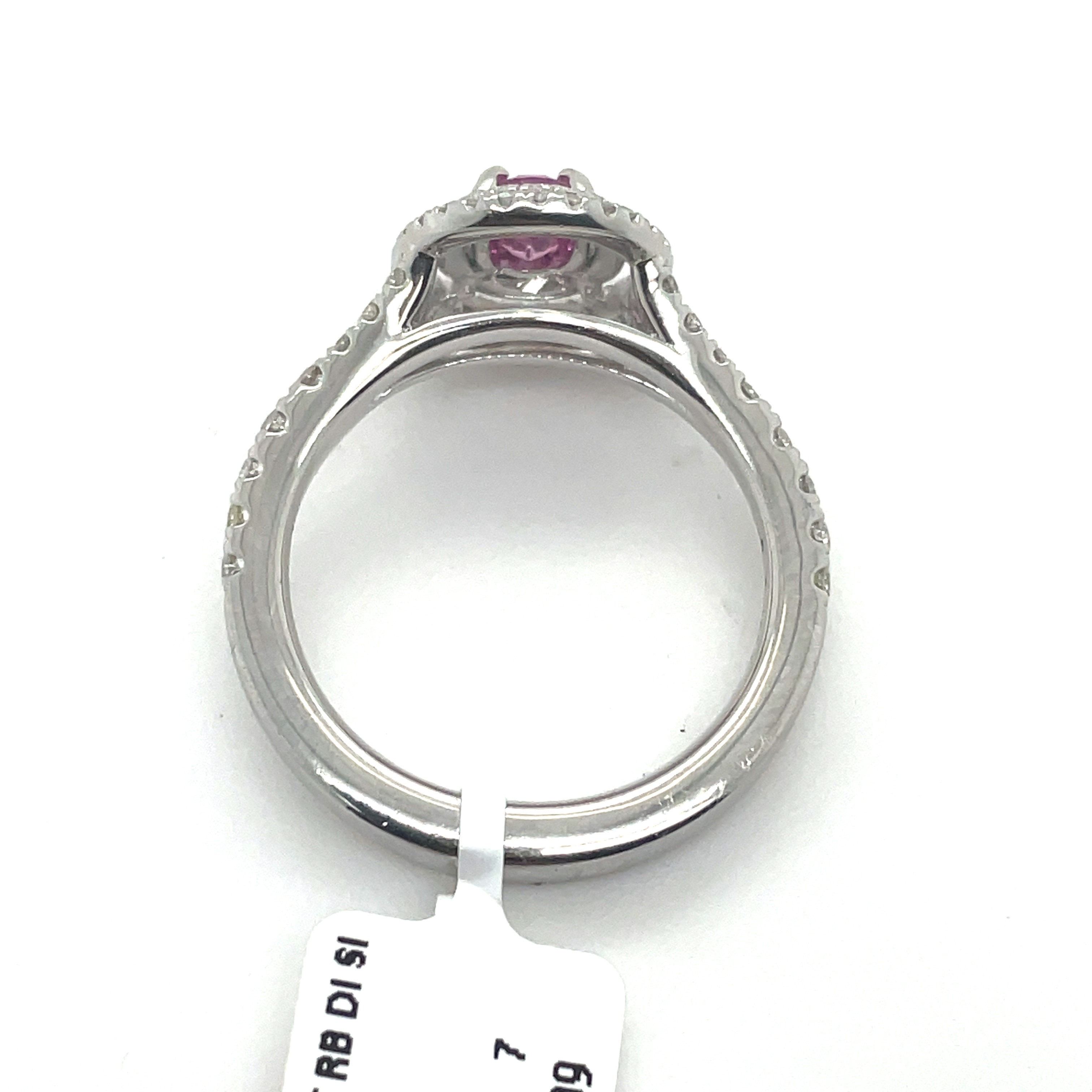 1=.47CT OVAL PINK SAPPHIRE, PRONG SET SURROUNDED BY DIAMOND HALO