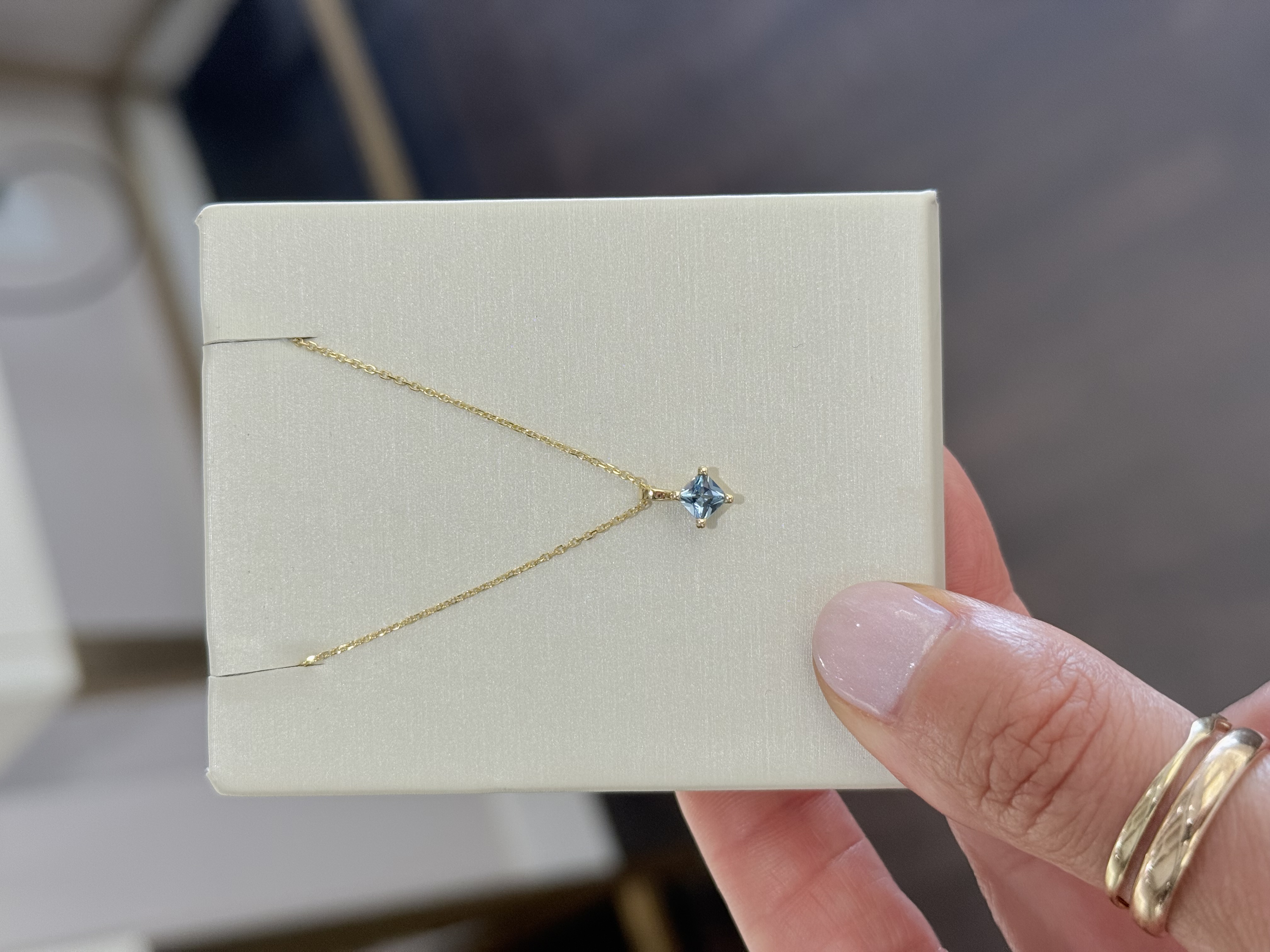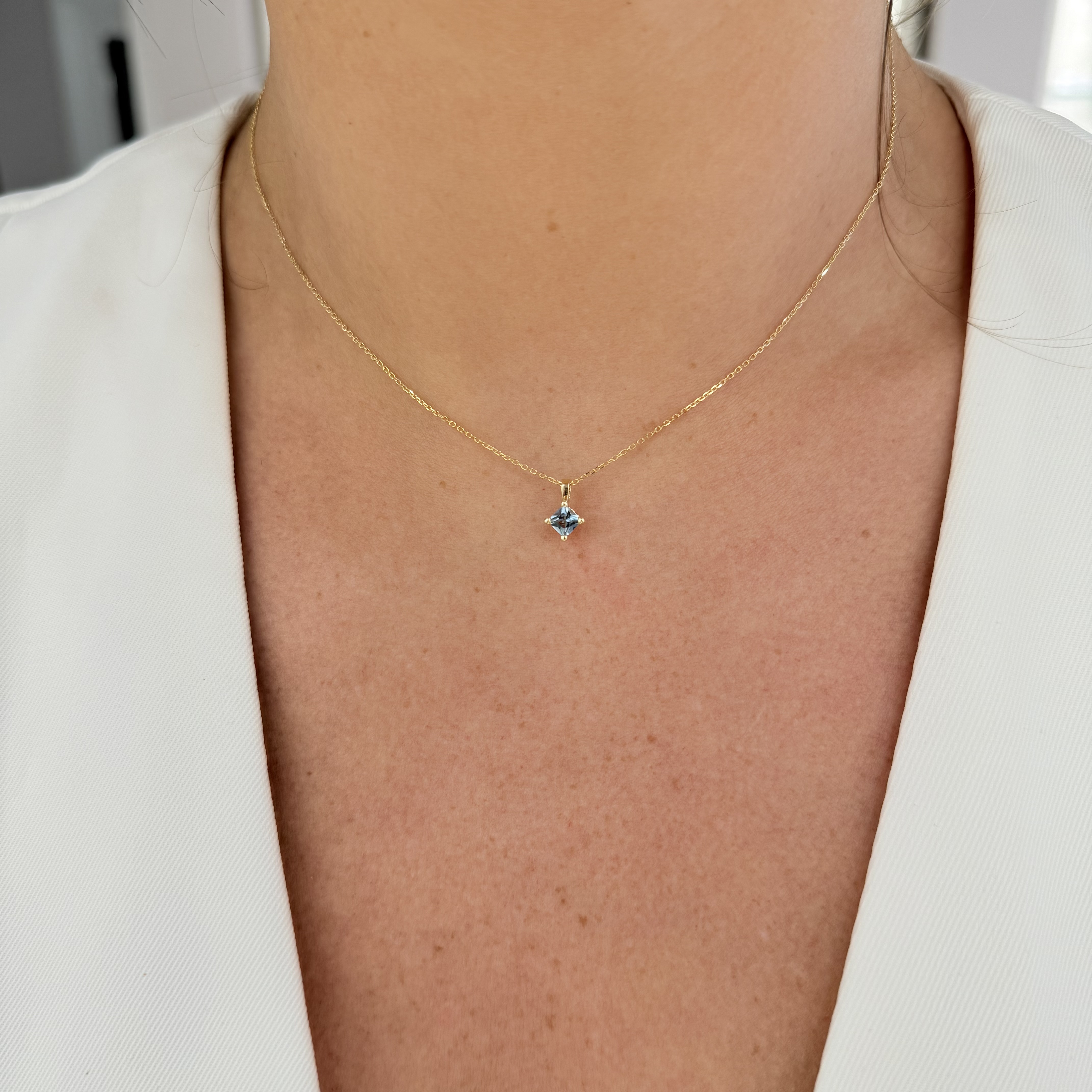 14KY GOLD "SUMMERWIND COLLECTION: JUICY GEMS" PRINCESS CUT AQUAMARINE 4-PRONG PENDANT