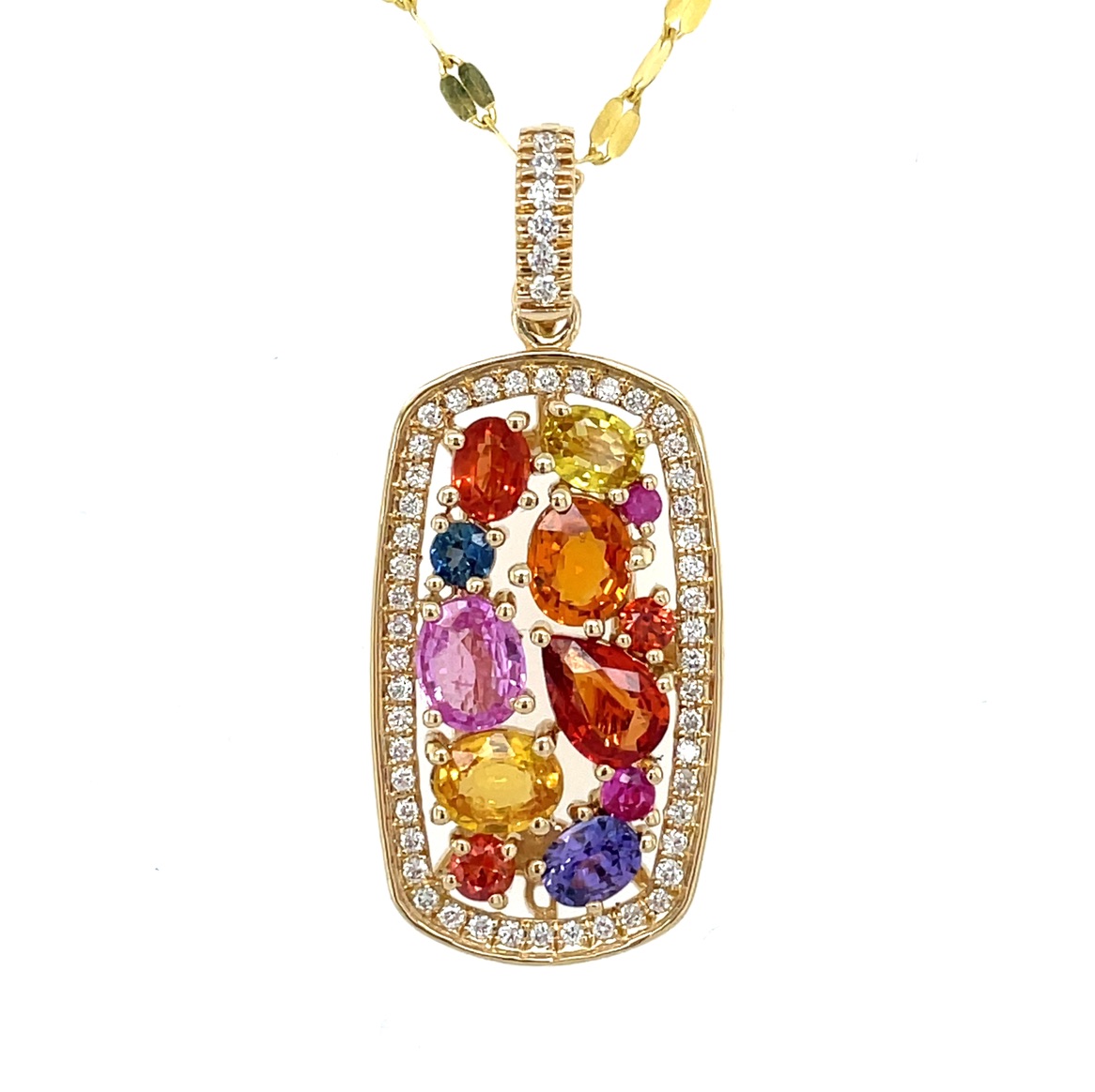 16" 14KY GOLD '"PRINCESSA COLLECTION" BY BELLARRI™ NATURAL MULTICOLOR SAPPHIRE AND DIAMOND ACCENTED PENDANT