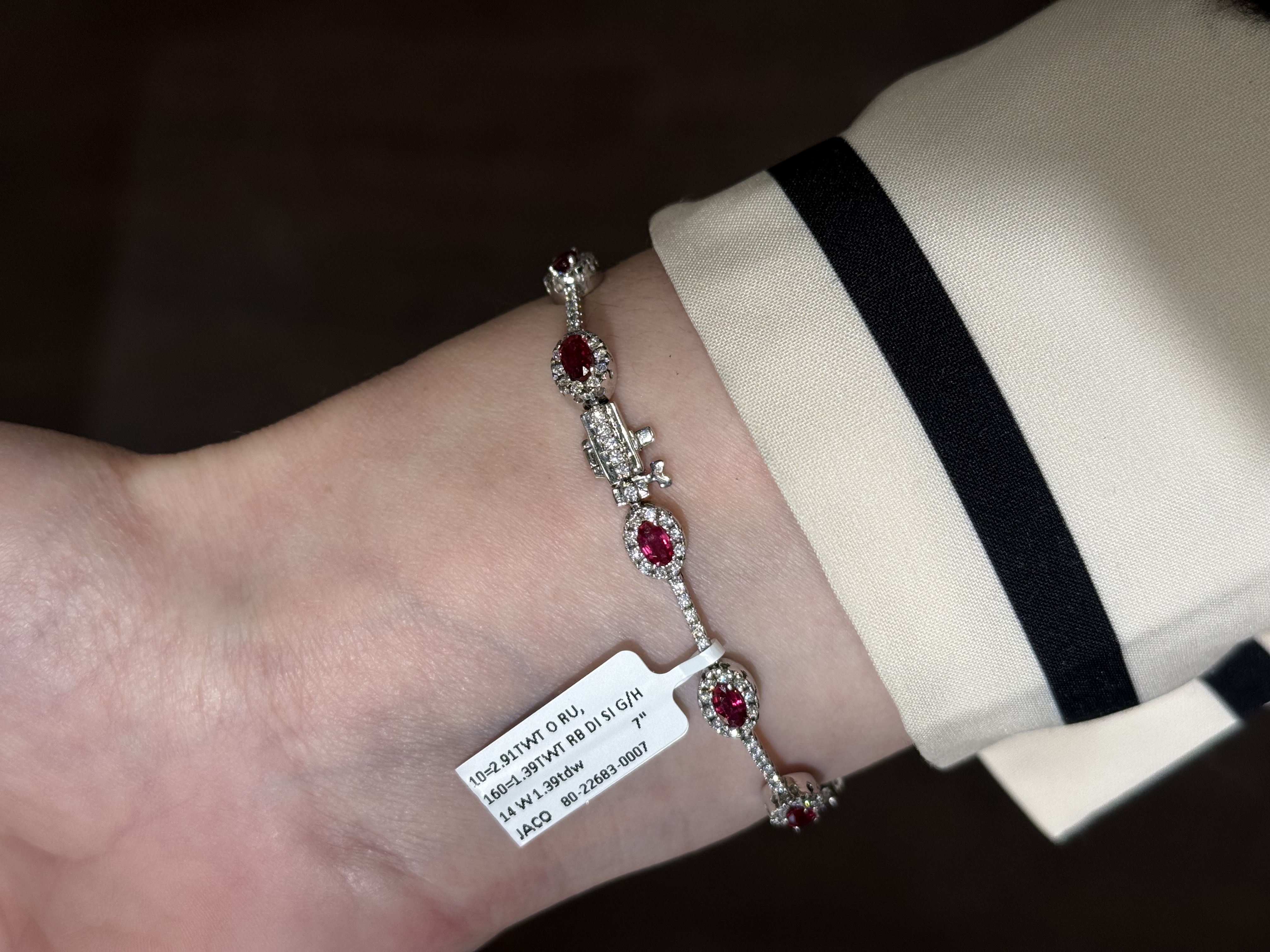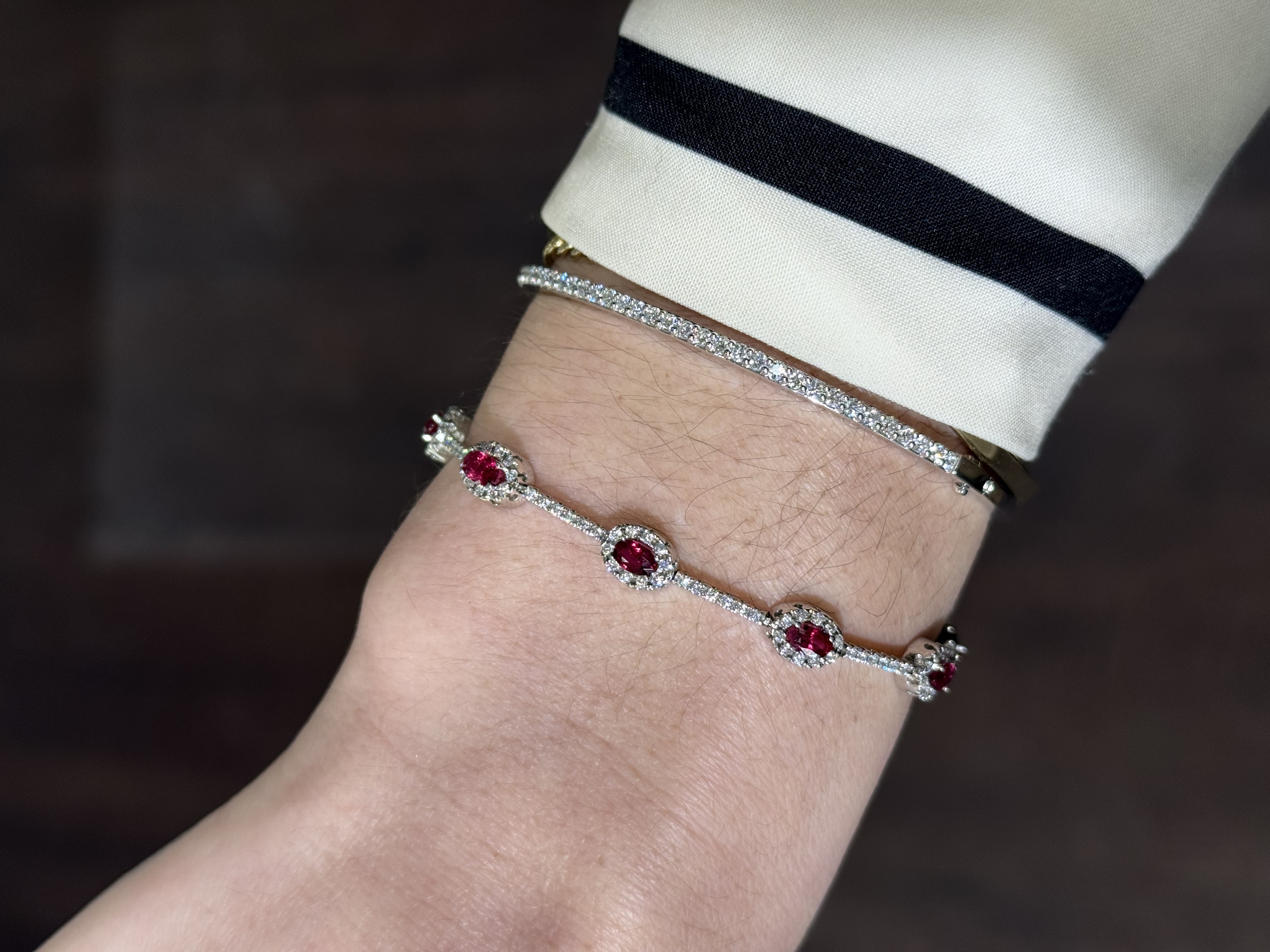 7" 14KY GOLD OVAL RUBY & DIAMOND HALO TENNIS BRACELET