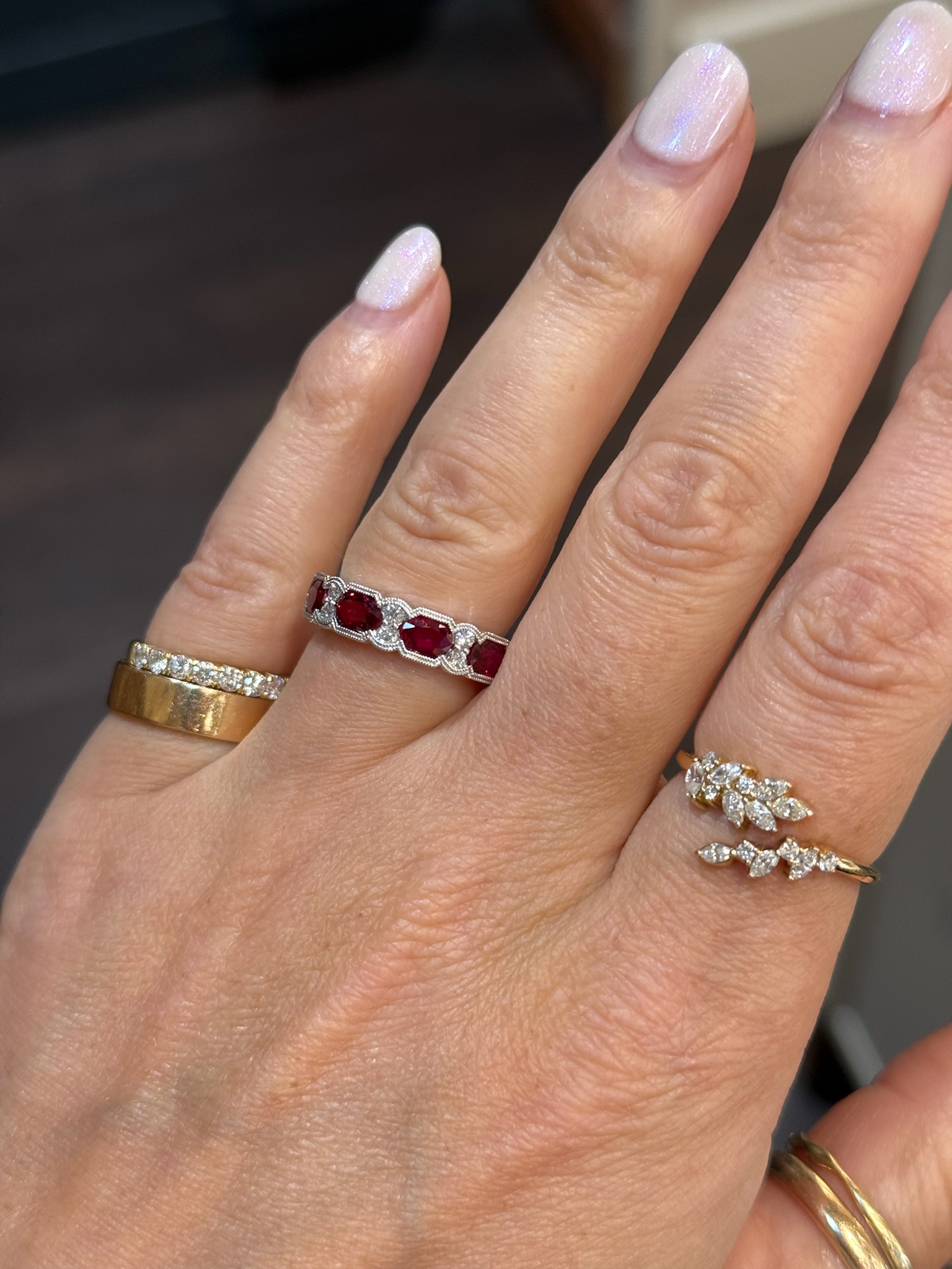 4=1.66CTTW OVAL NATURAL RUBIES, SEMI BEZEL SET