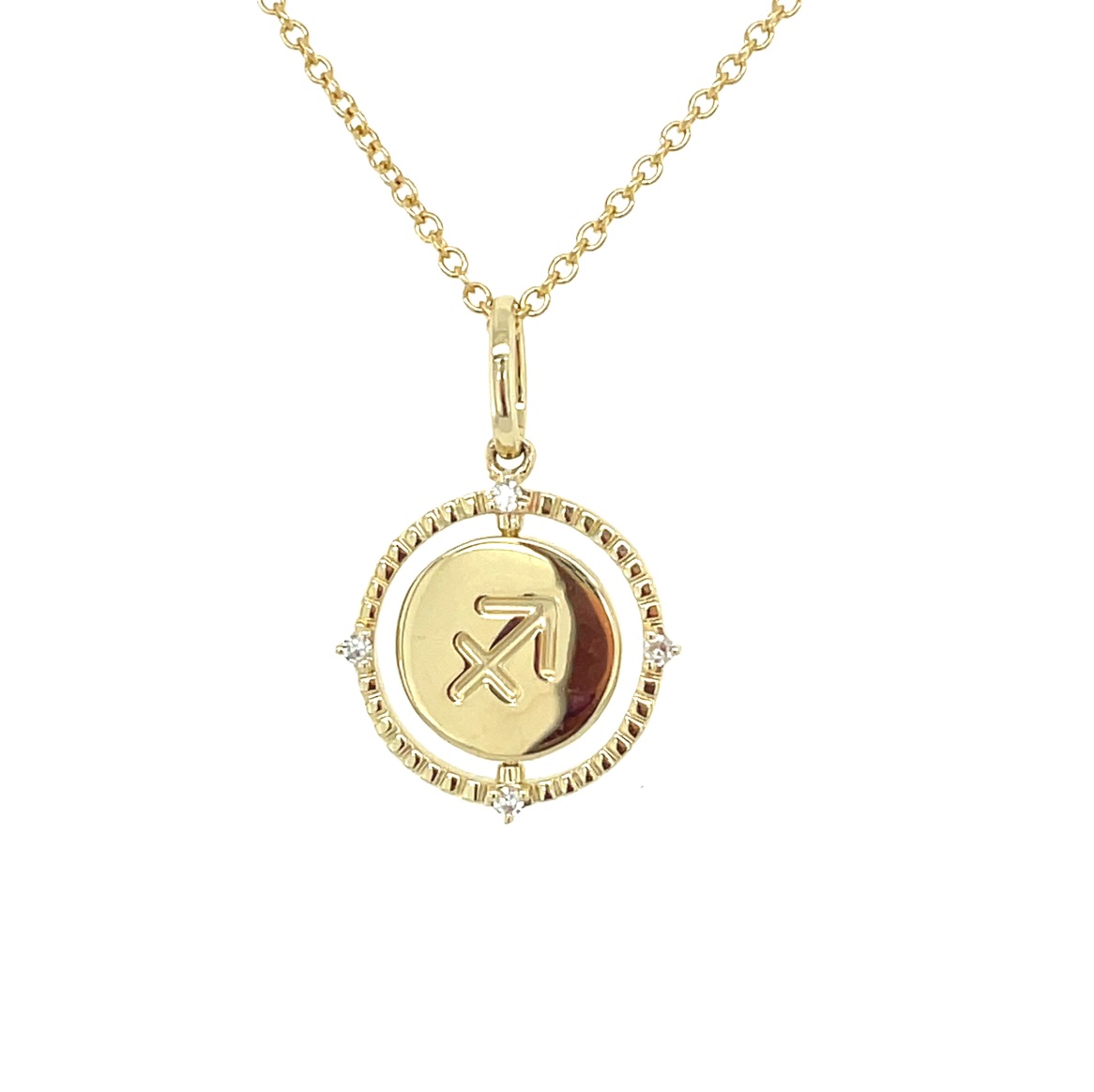 14KY GOLD "SAGITTARIUS SIGN" ZODIAC CIRCLE DIAMOND-ACCENTED PENDANT WITH POLISHED BAIL