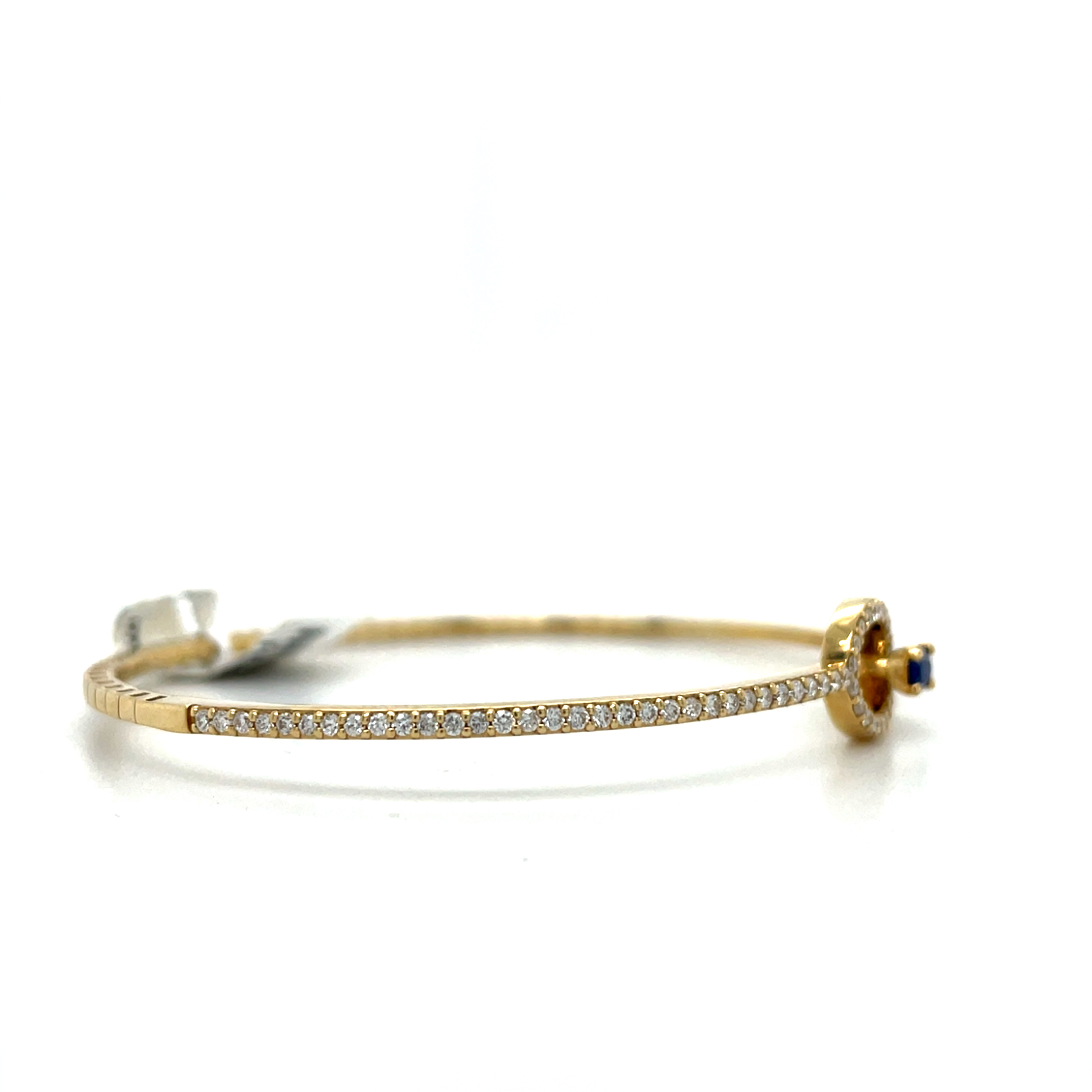 14KY GOLD DIAMOND BANGLE BRACELET WITH OVAL BLUE SAPPHIRE ACCENT