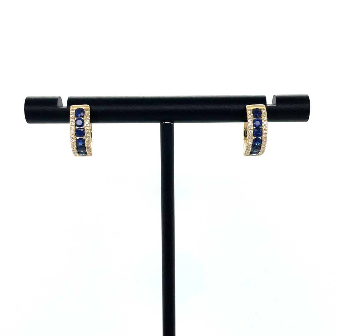 14KY GOLD SAPPHIRE & DIAMOND CHANNEL HUGGIE HOOP EARRINGS