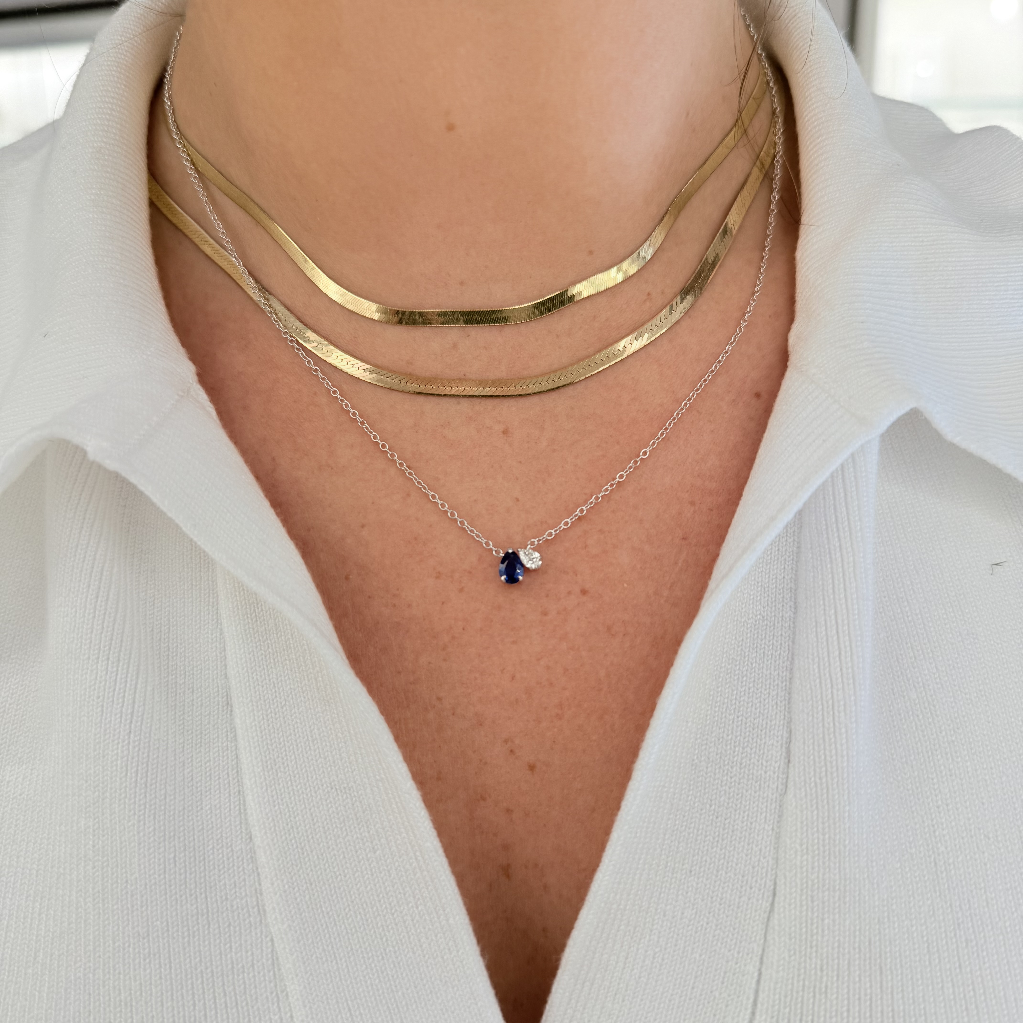 14KW GOLD TWO-STONE BLUE SAPPHIRE & DIAMOND PENDANT