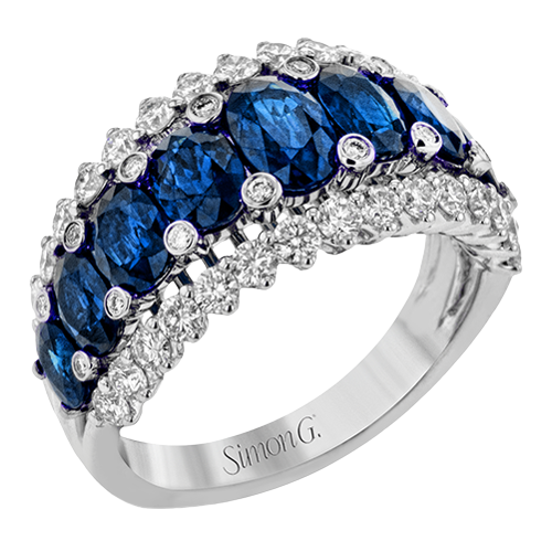 18KW GOLD PRONG-SET OVAL SAPPHIRE RING WITH DIAMOND RIMS BY SIMON G.®
